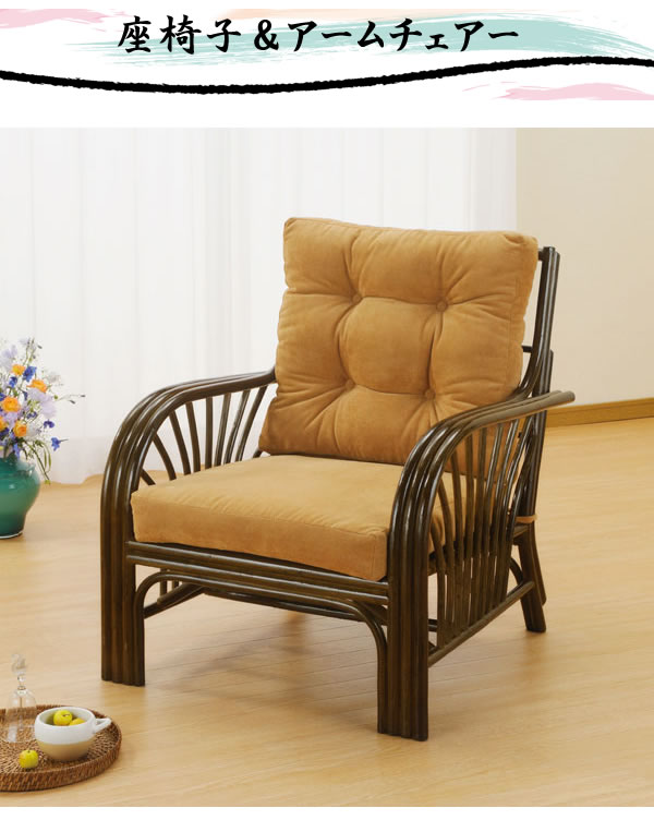 籐(ラタン)椅子 アームチェア 座椅子 座面高38センチ Y-631B 一人掛け アジアンテイスト ラタンチェア 座面スノコタイプ ワイドサイズ