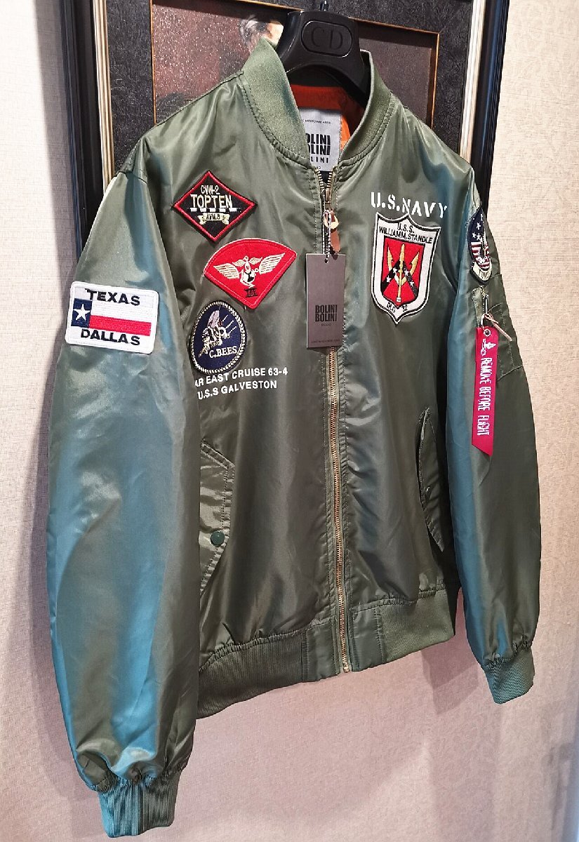 ROBERT CAVANI発※今シーズンTOPGUN/トップガン復刻・MA-1/フライトジャケット。生トムクルーズ主演の大ヒット映画『TOPGUN/トップガン』復刻のMA-1フライトジャケットです!MA-1の原型を踏襲し撥水防寒を備えた高機能ポリエステル生地を採用。多数のワッペンが特徴的な一着です。インナーなし薄手の仕様で今節に最適の一着です。