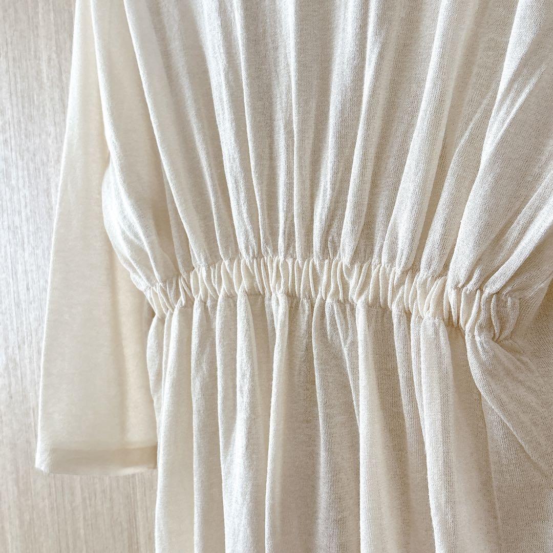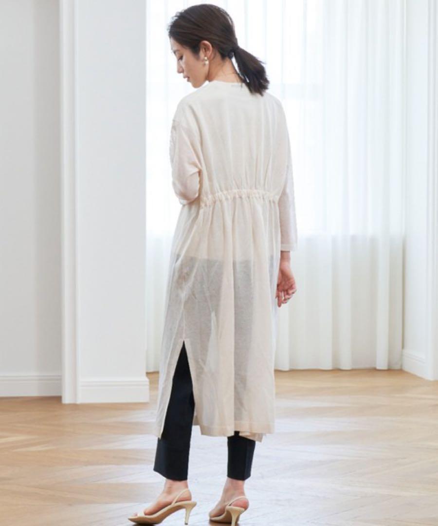 前身頃はすっきりと、後ろ身頃はウエスト部分にギャザーを寄せたロングカーディガン。