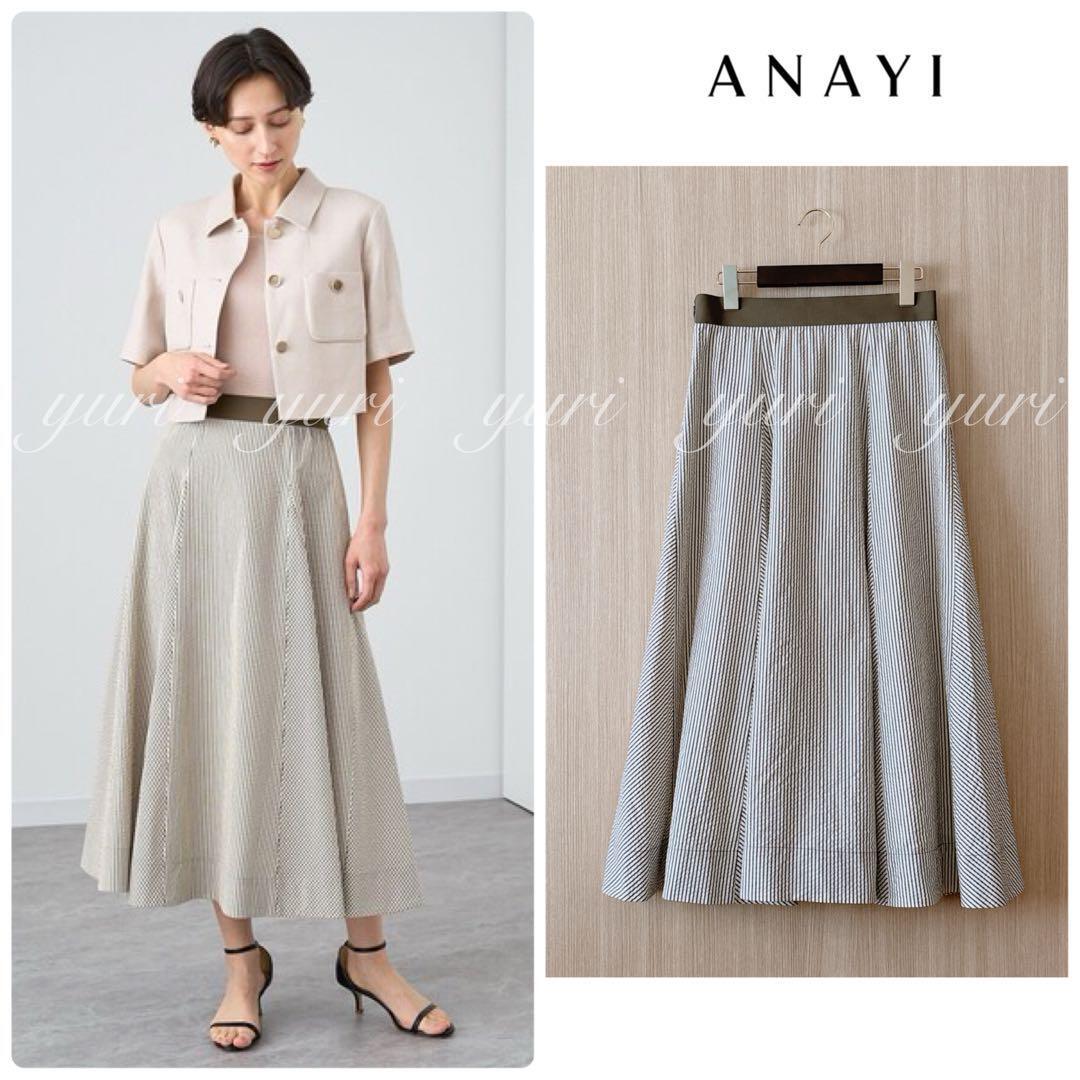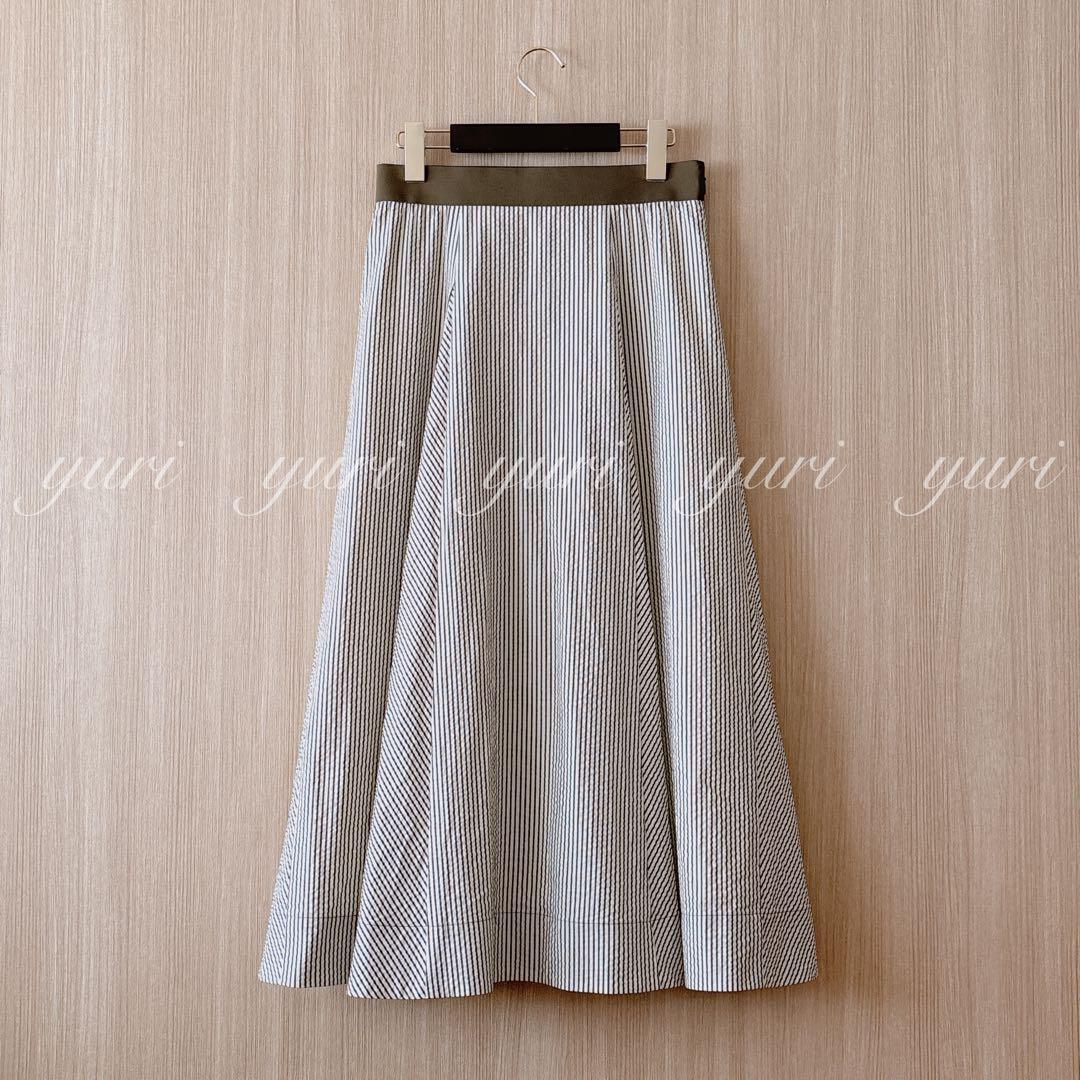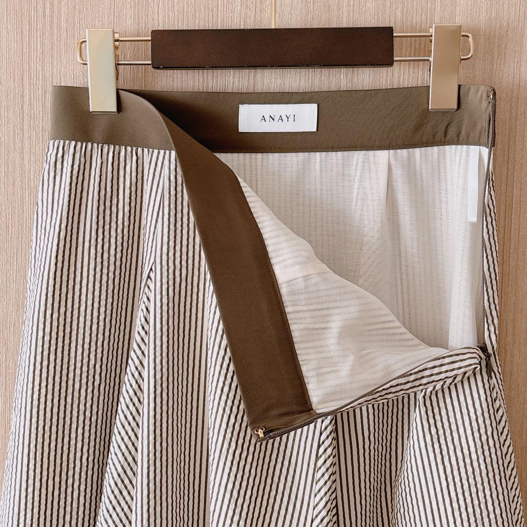 【215】アナイ サッカーストライプマチフレア スカート 38 ブラウン系 B