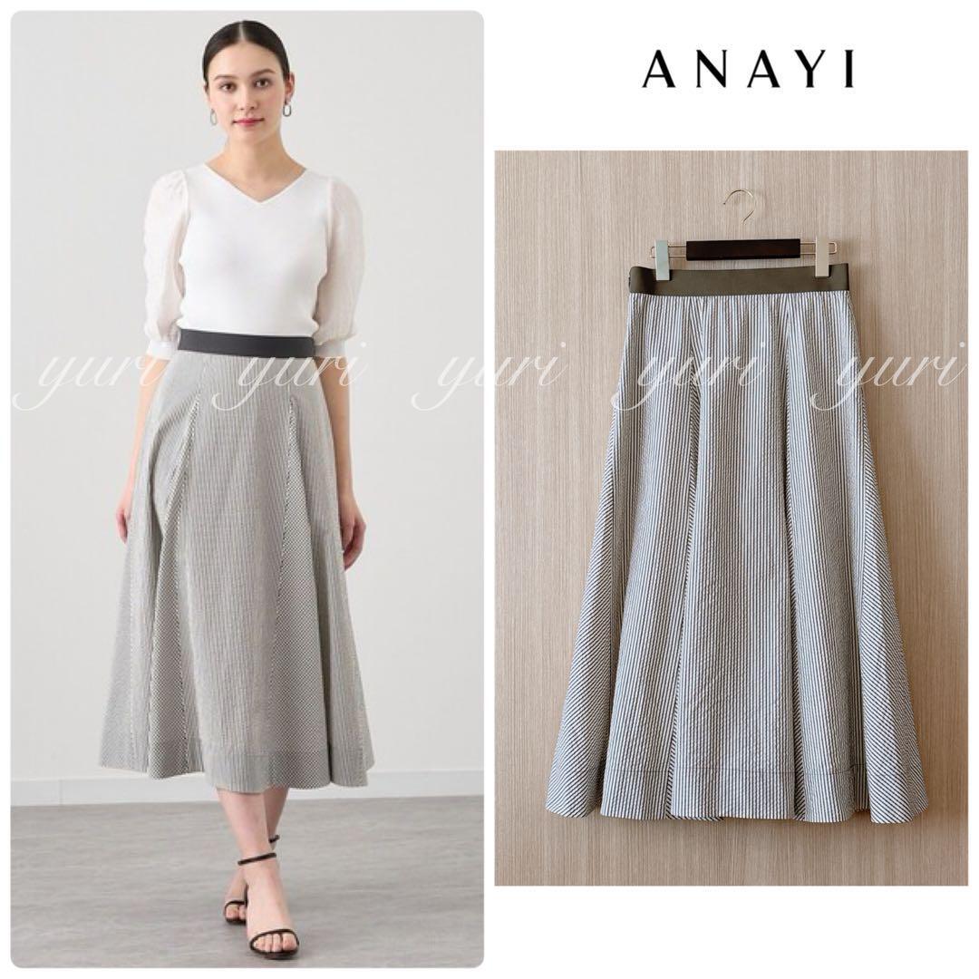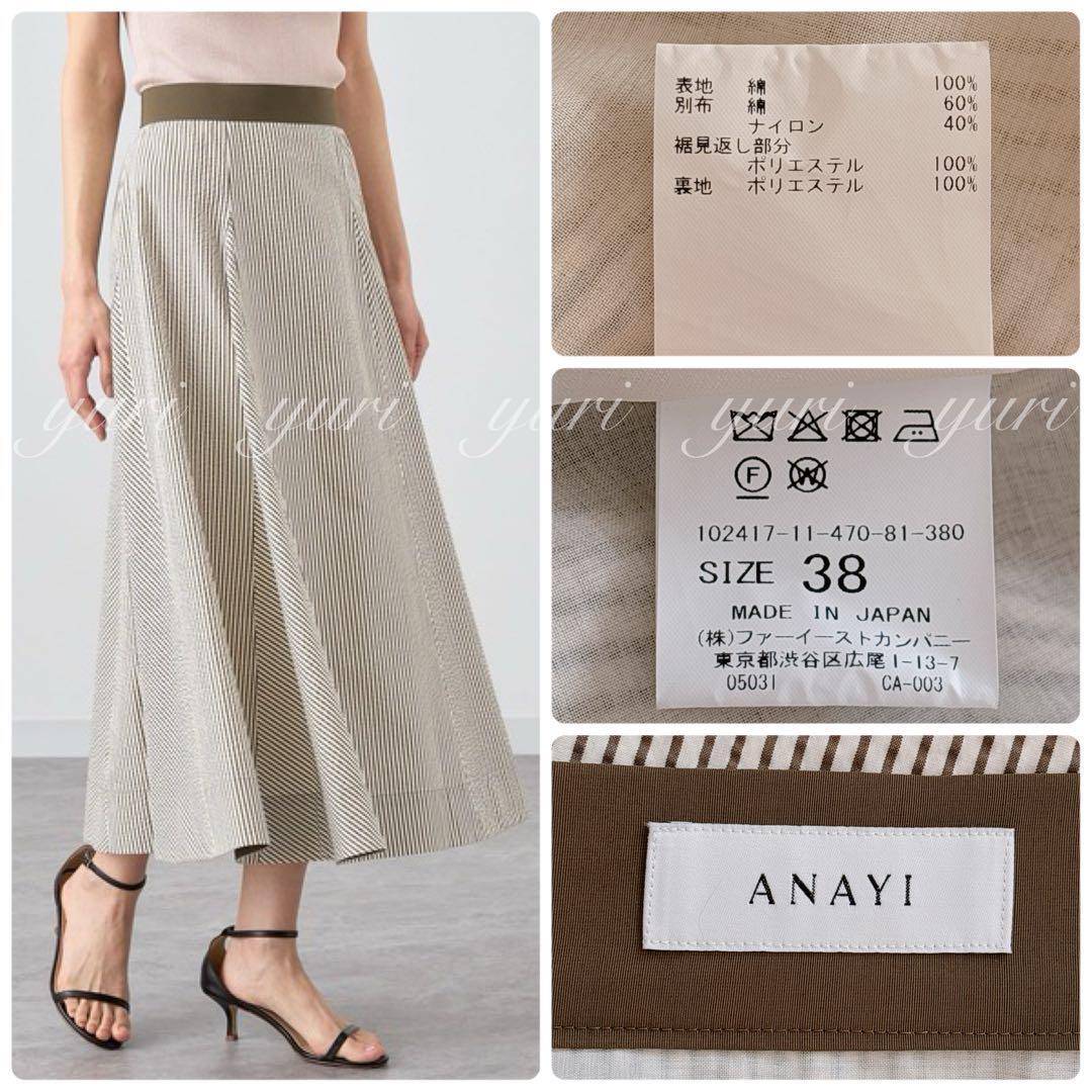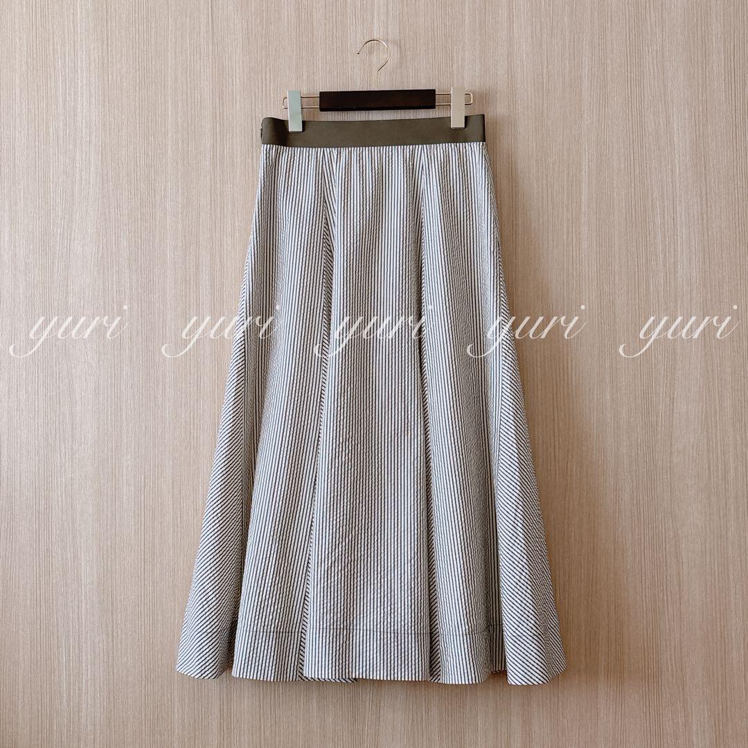 【215】アナイ サッカーストライプマチフレア スカート 38 ブラウン系 B