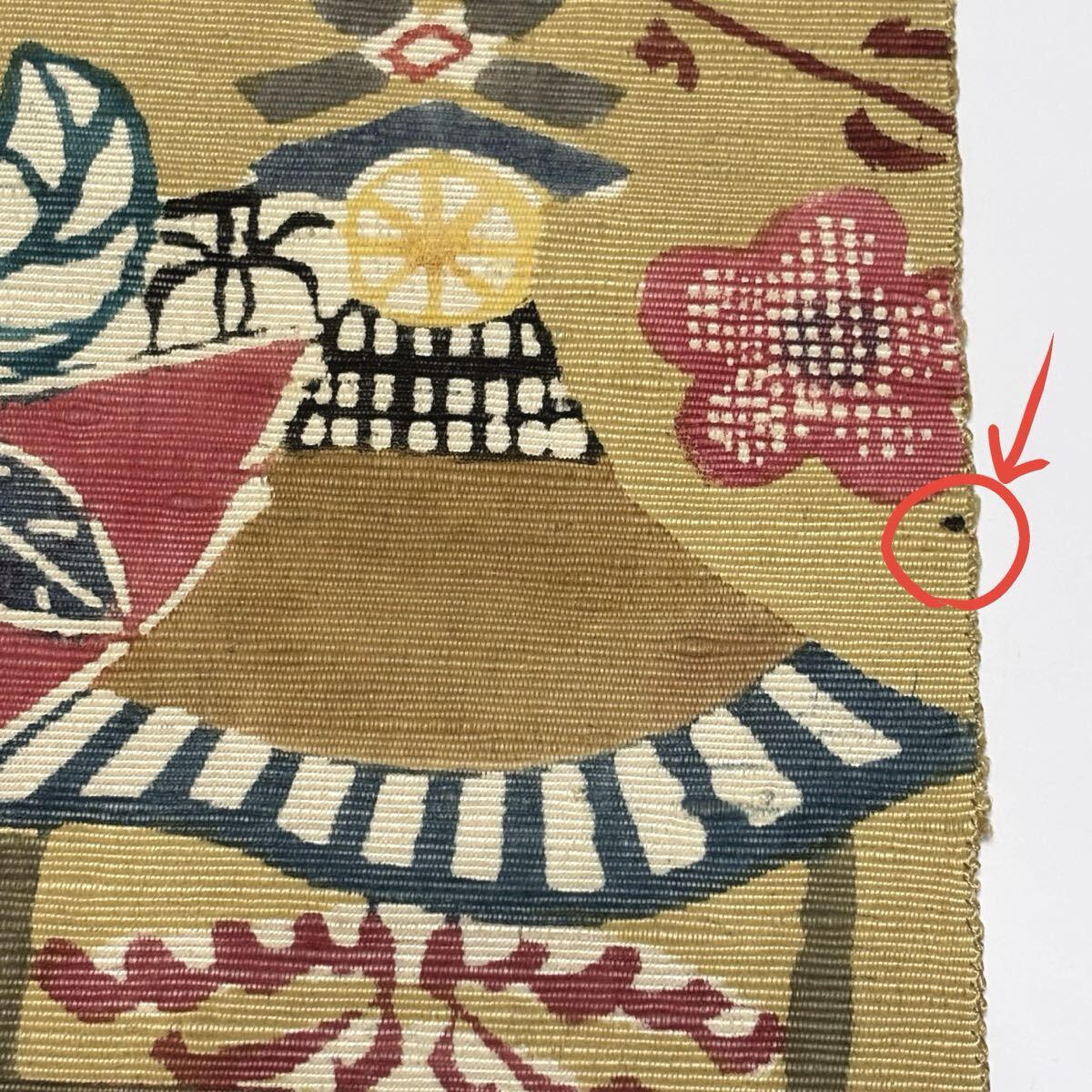 染料かと思いますが、黒い点が柄の部分にあり。すこし糸の飛びでているところがあります。画像にてご確認ください。