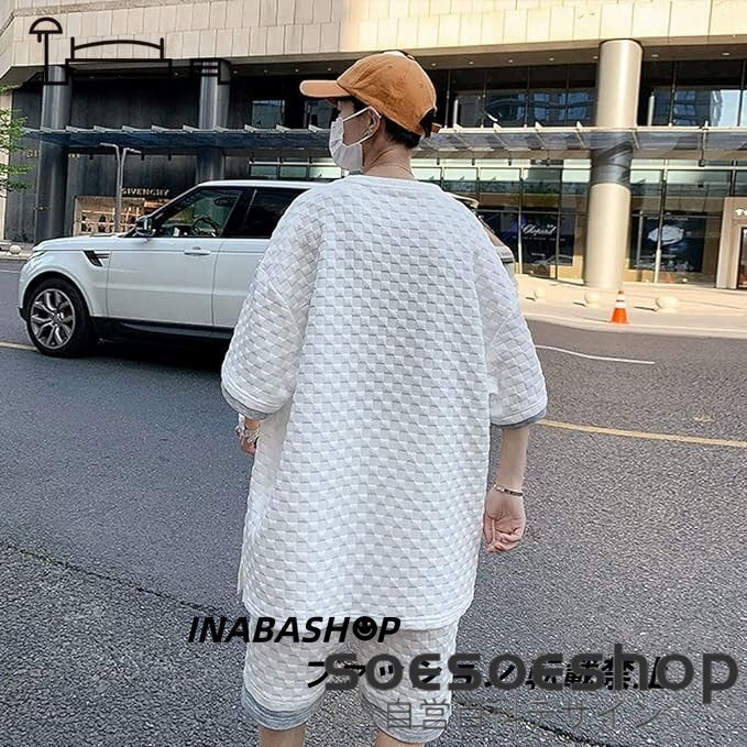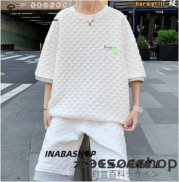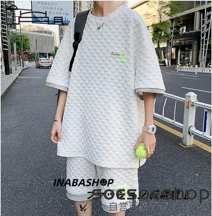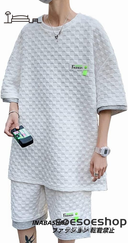 ビッグシルエット 半袖シャツ 2点セット メンズ 半袖Tシャツ ショートパンツ 上下セット ハーフパンツ セットアップ 五分袖 短パンゆったり