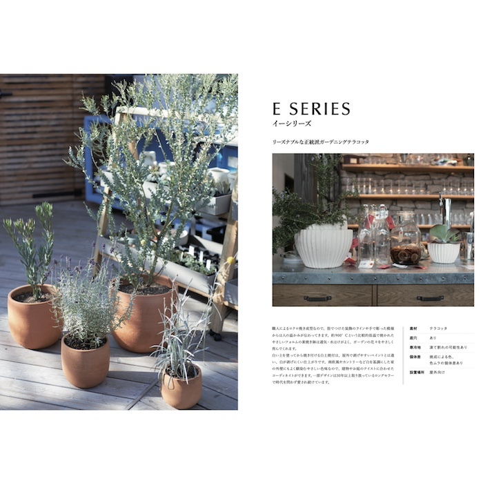 約900°Cという比較的低温で焼かれたやさしいフォルムの素焼きは通気・水はけがよく、ガーデンの花々をやさしく育んでくれます。