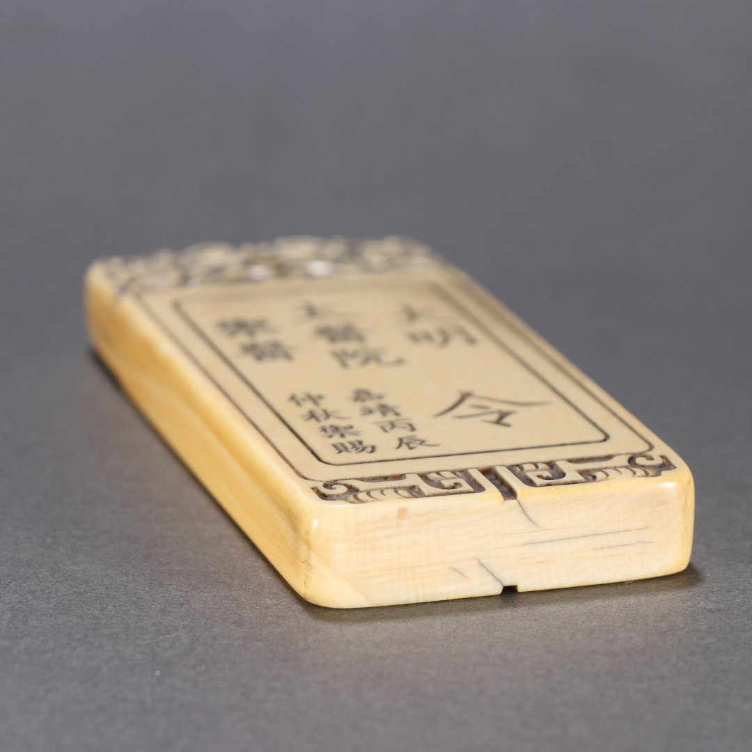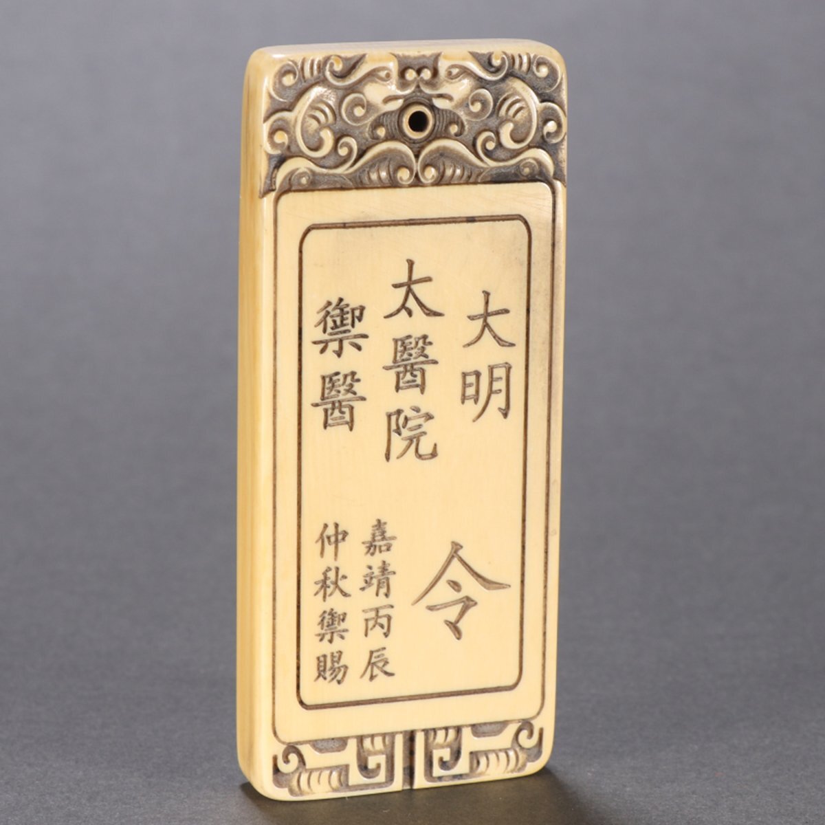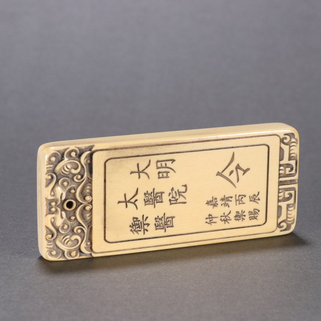 【安】明時代 特殊白材 太醫院令牌 極細工 古置物 古擺件 中国古美術 古美味 時代物 古董品 209 サイズ(約寸) |