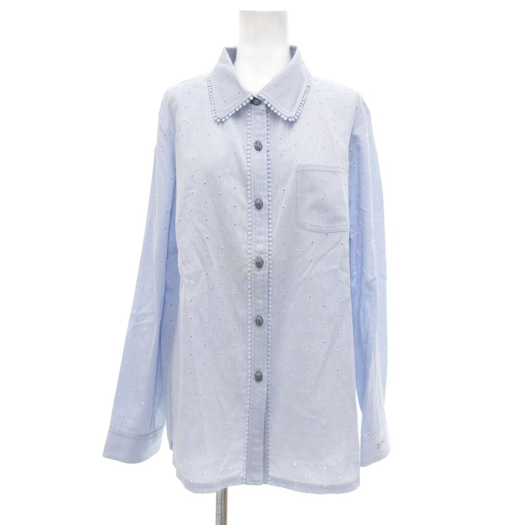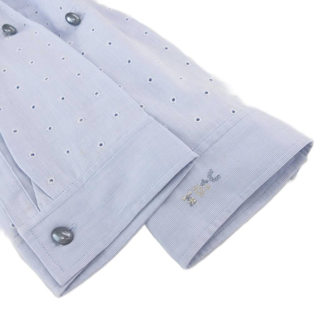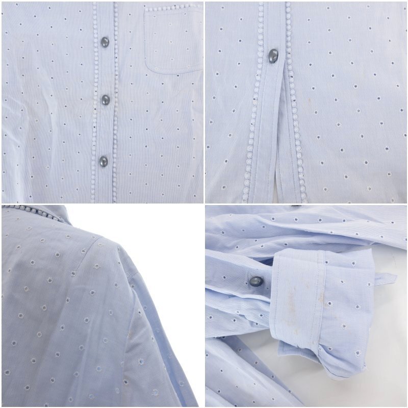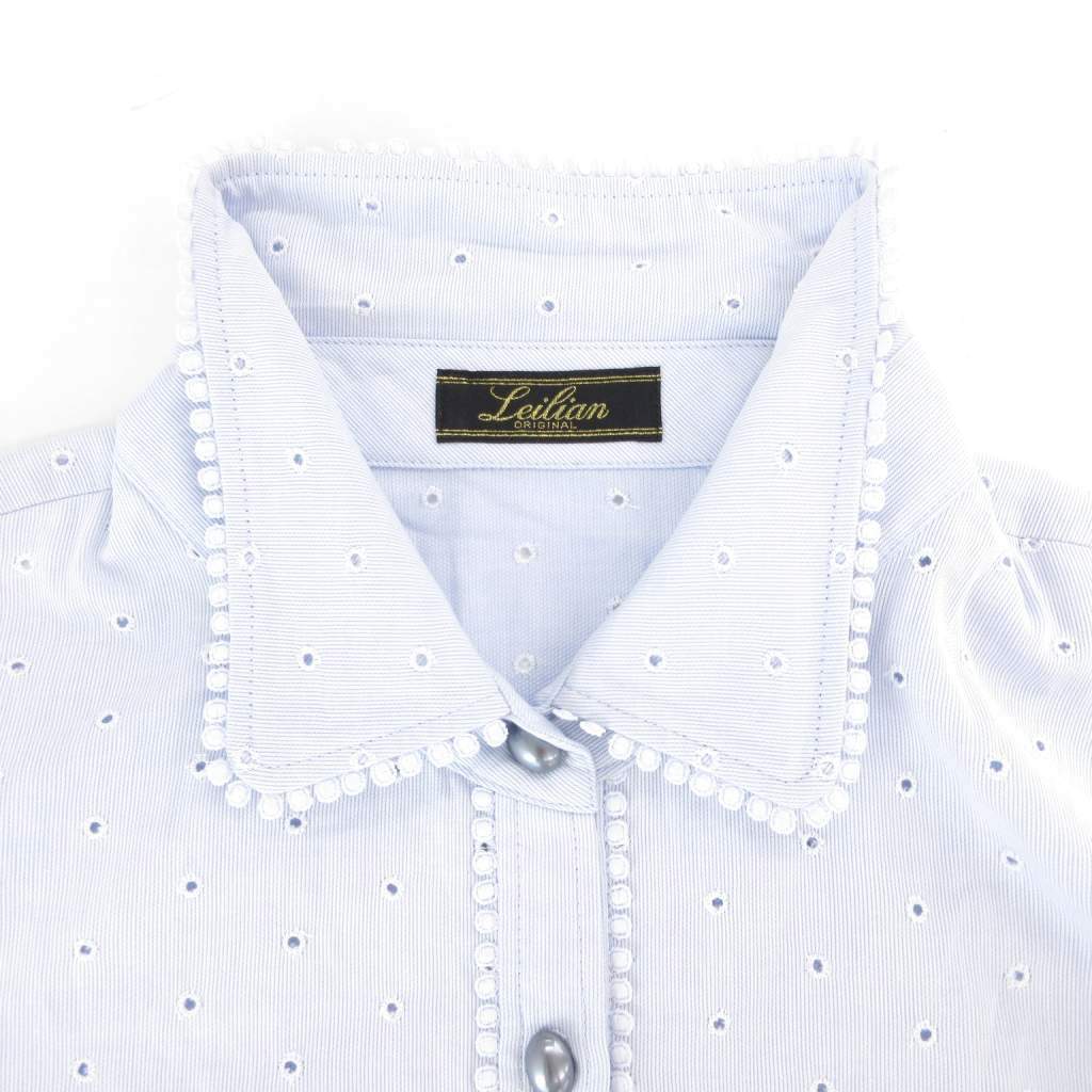レリアン Leilian シャツ ブラウス アイレットレース 刺繍 長袖 13+ 水色 ライトブルー /UO ■YHS2 レディース