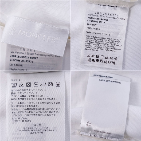| 美品 モンクレール MONCLER Tシャツ 2023 カットソー ロングスリーブ 長袖 コットン トップス メンズ L ホワイト |