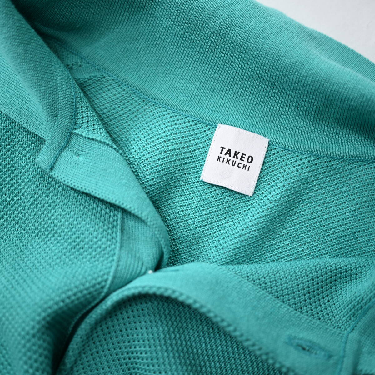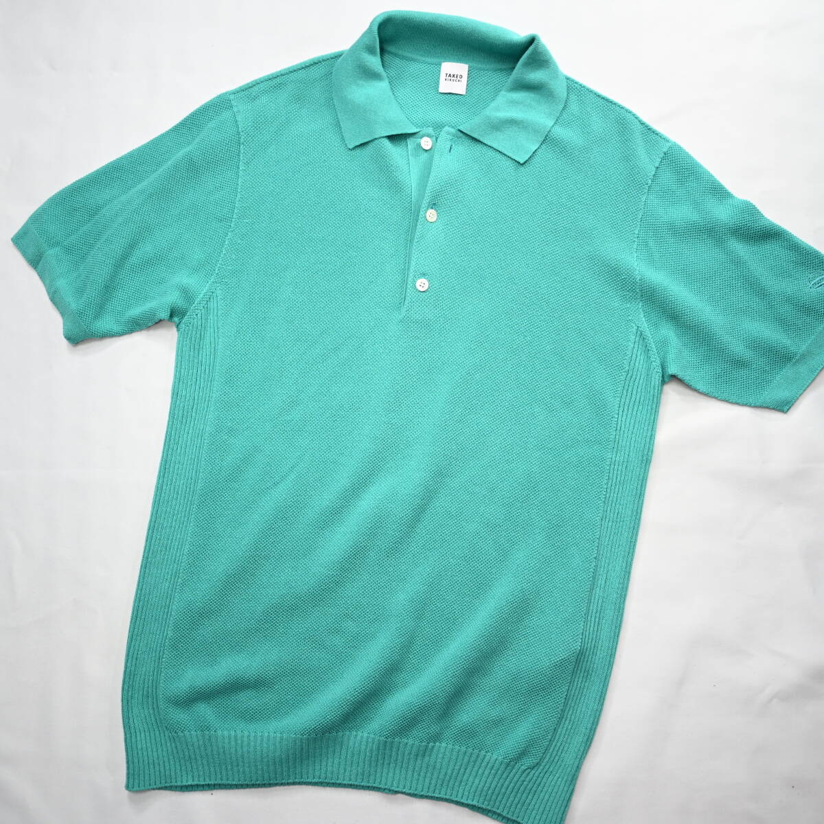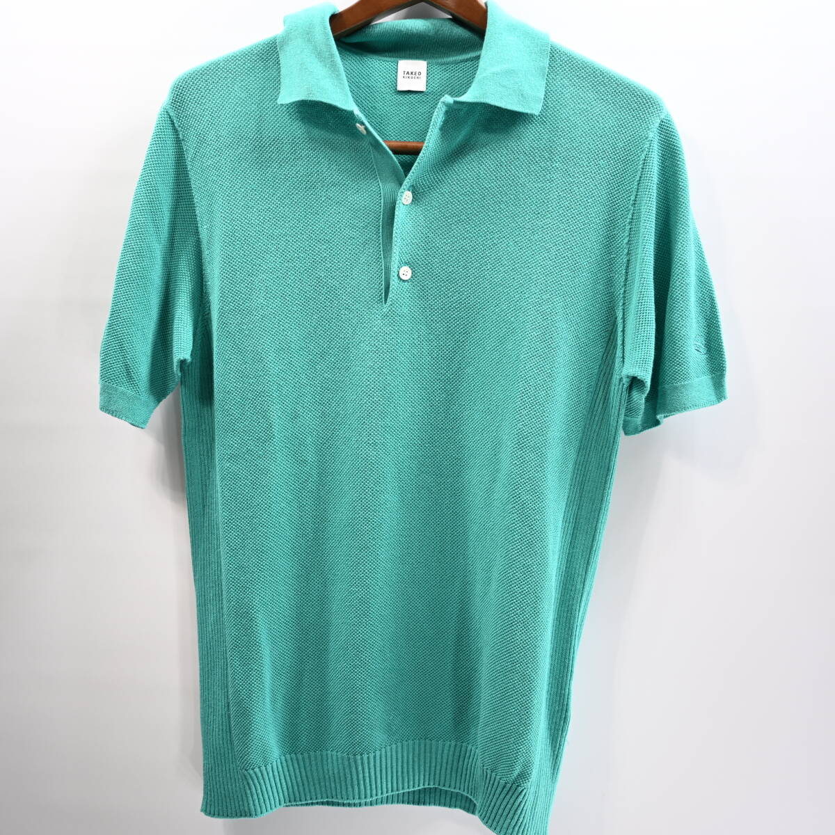 【タケオキクチ】半袖麻混ニットポロシャツ3緑日本製