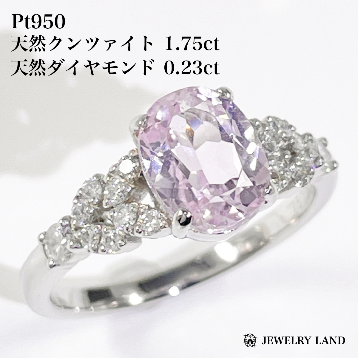 Pt950 天然クンツァイト 1.75ct ダイヤモンド 0.23ct リング