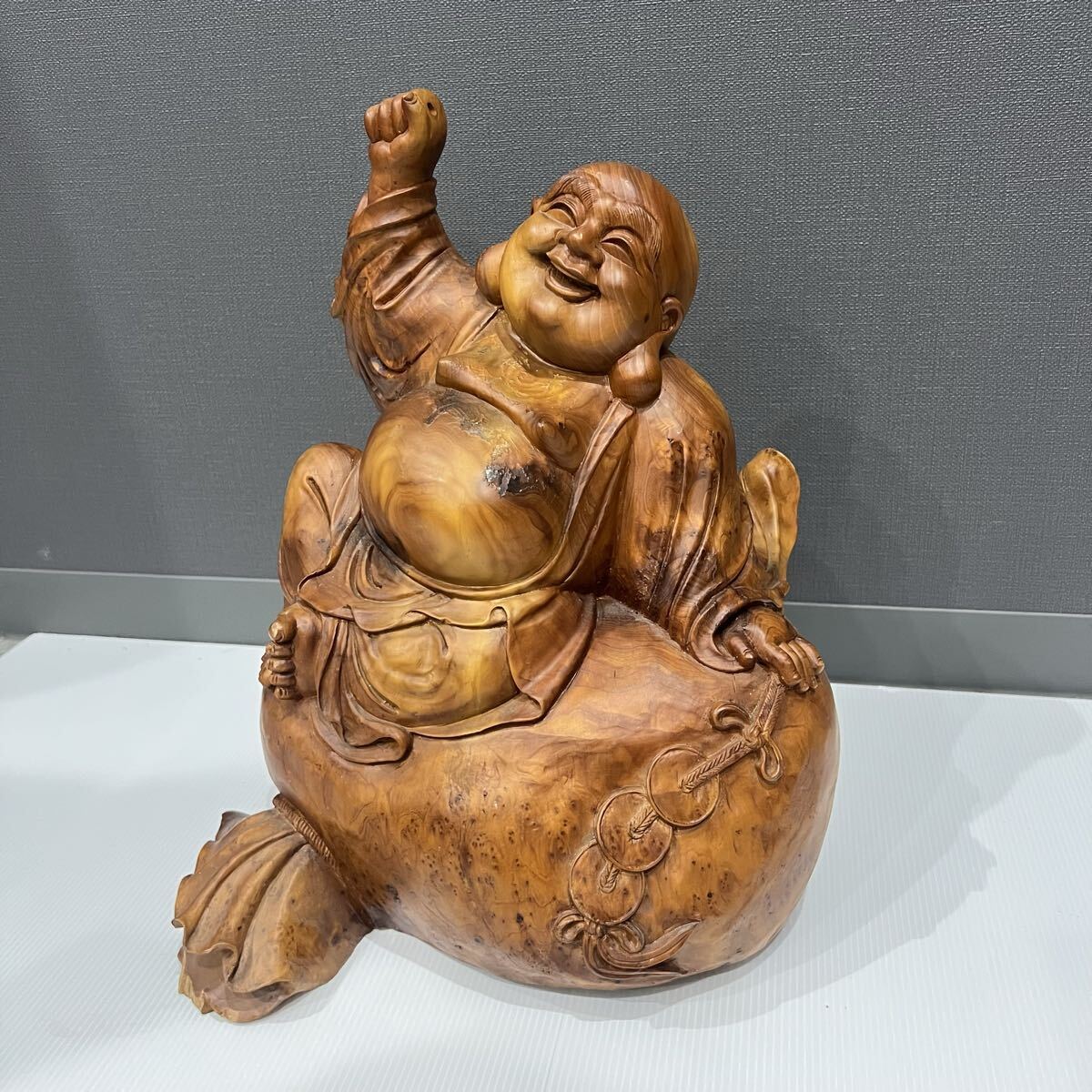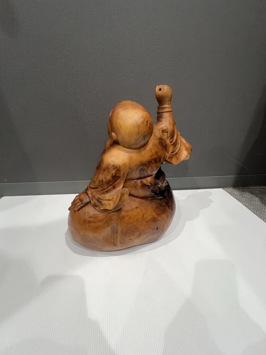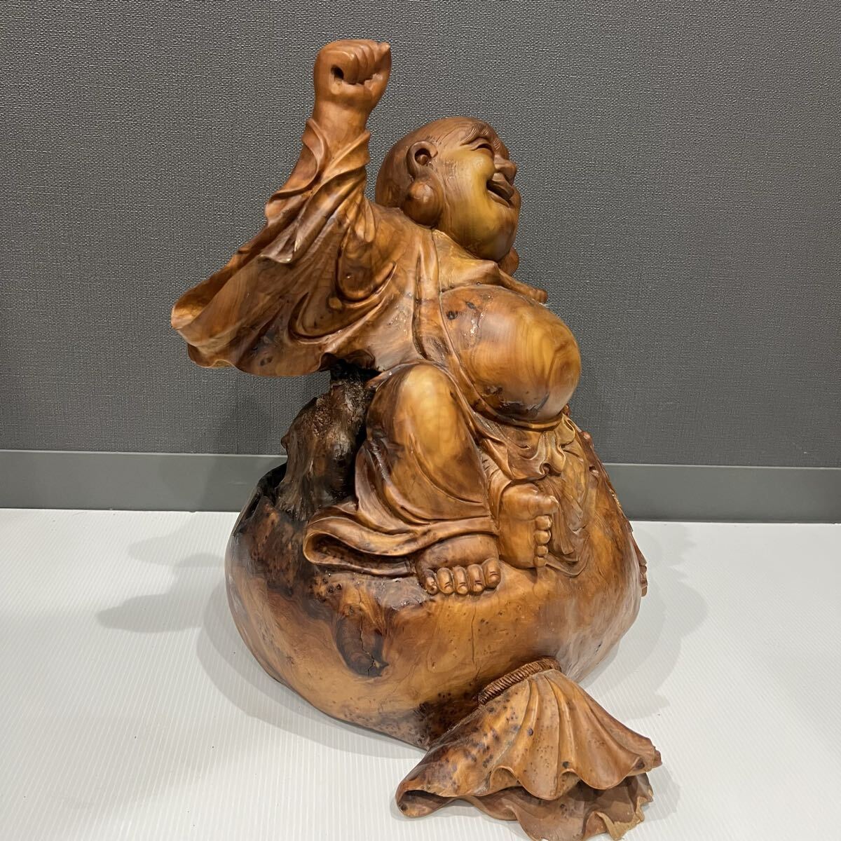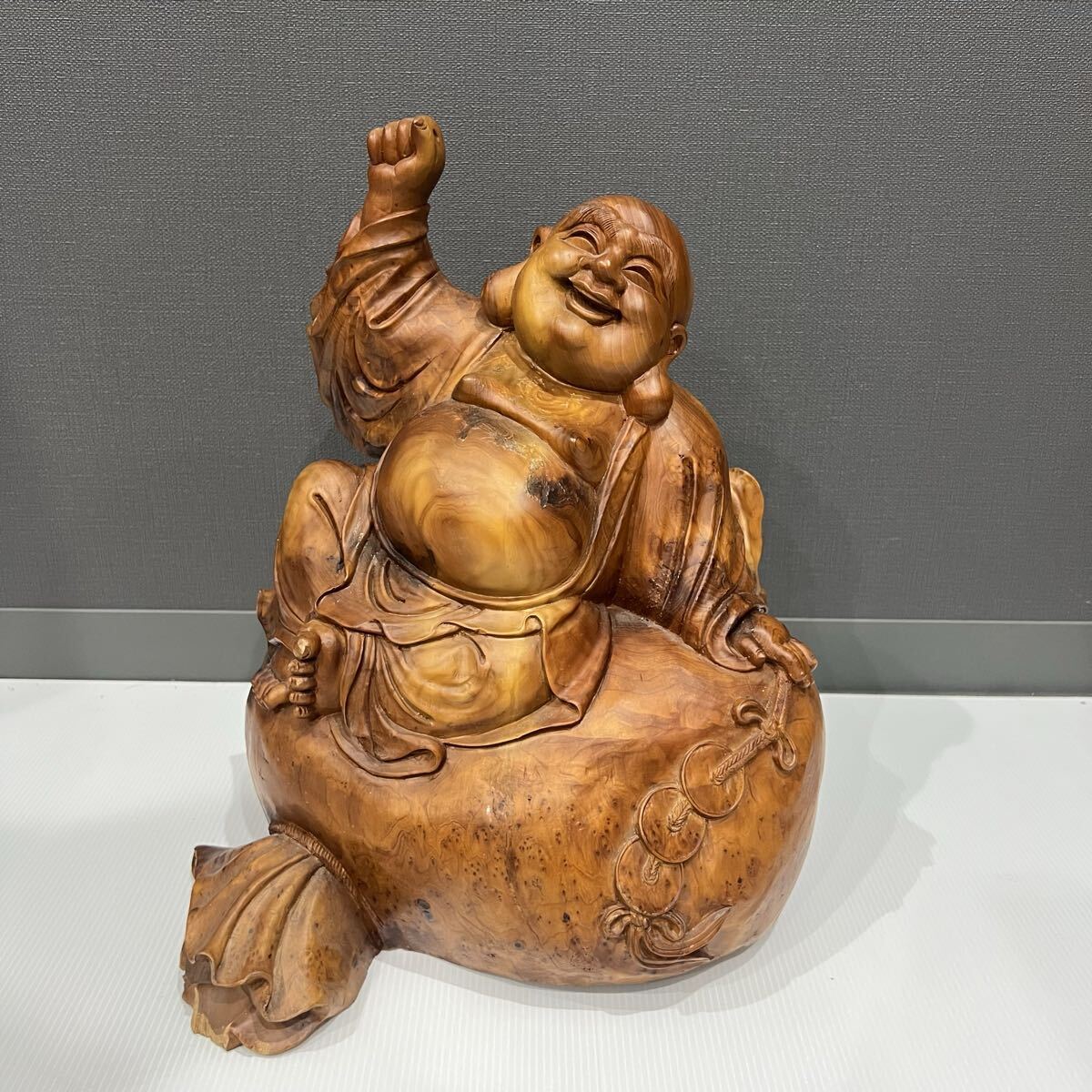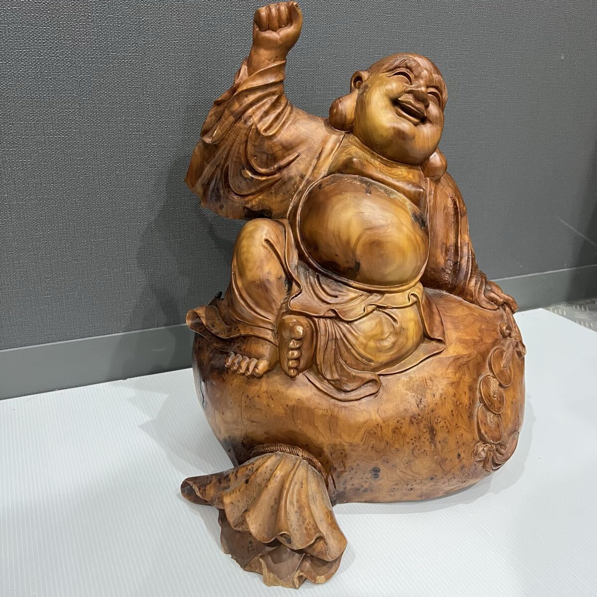 【中古品】 七福神 布袋様 開運 骨董品 縁起物 インテリア 高さ約40cm 木彫り 木彫りオブジェ 時代物 大型布袋様