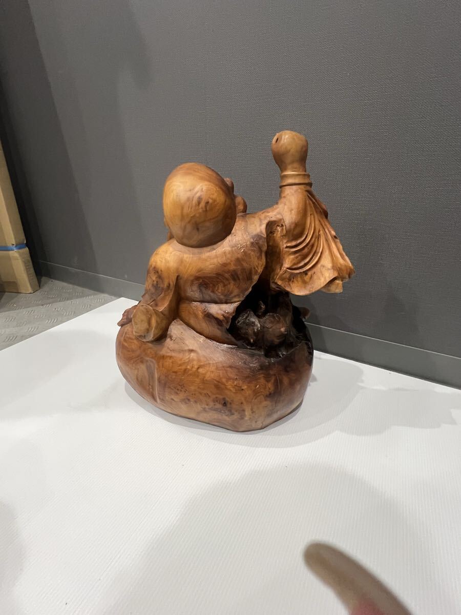 重さ不明、木彫りなのでずっしりしていますが測れていません。