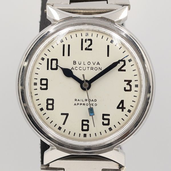 デッドストック級 ブローバ 箱付 手巻 アキュトロン鉄道承認時計 音叉式 シルバー文字盤 メンズ腕時計 OGH 9508ABC5285100