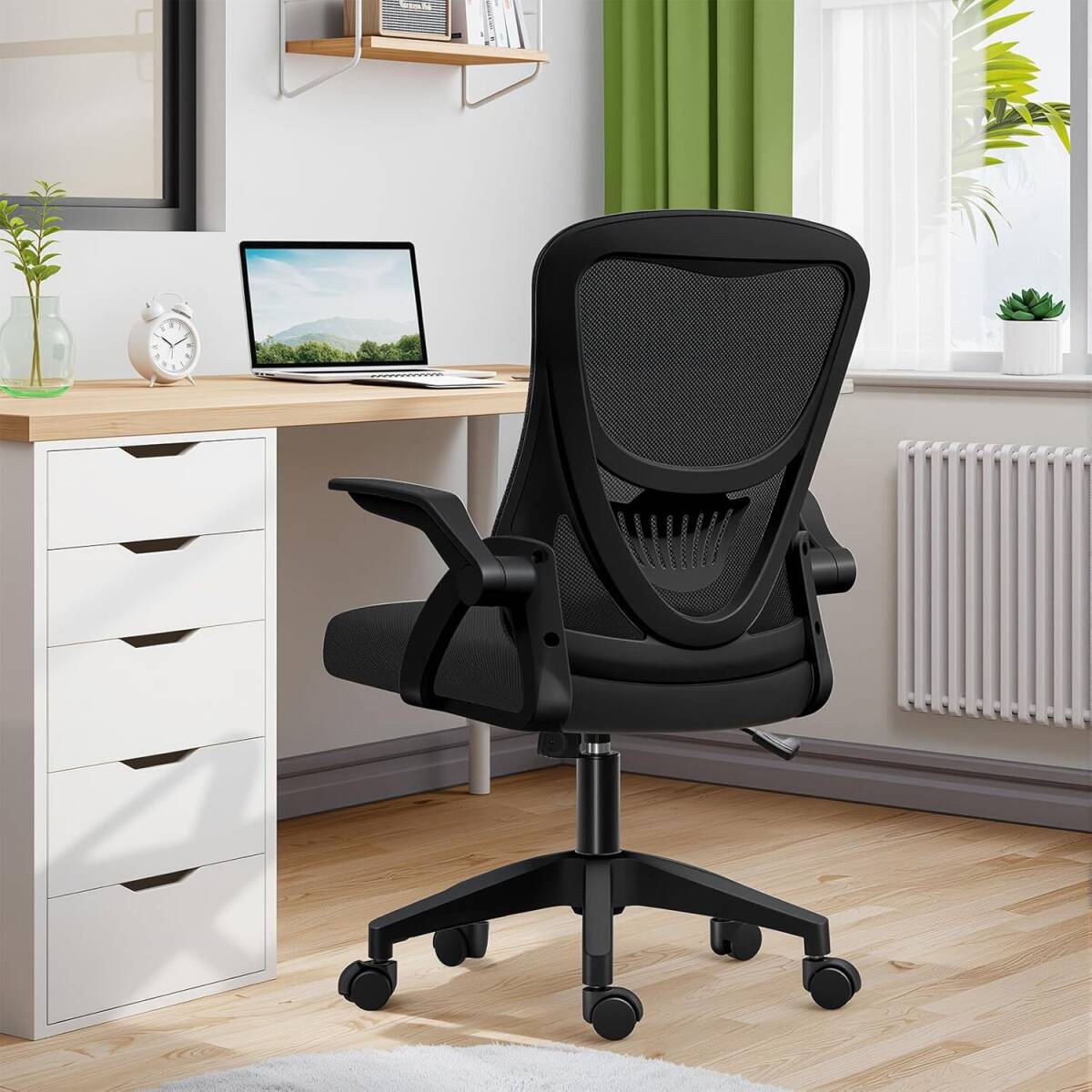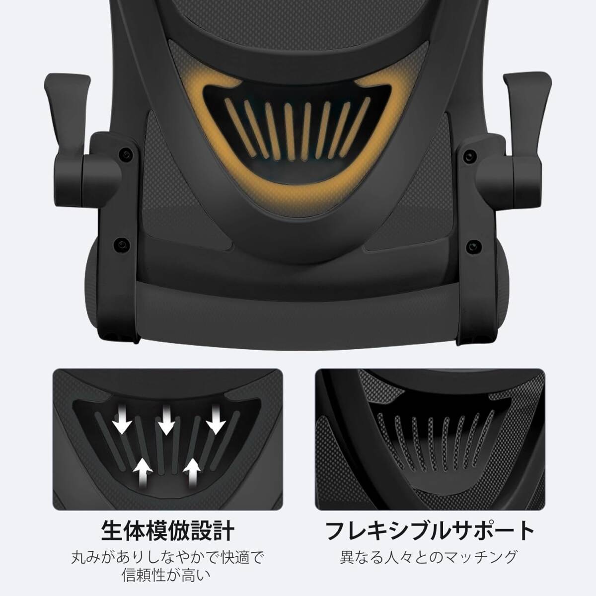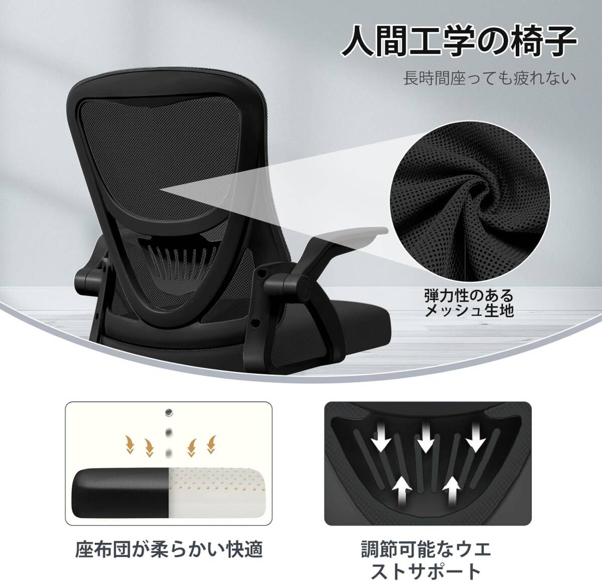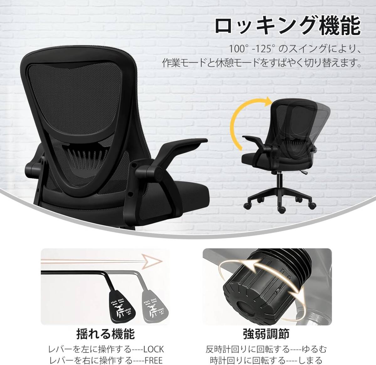 ブラック色 オフィスチェア 椅子 テレワーク 疲れない 跳ね上げ式アームレスト コンパクト 約105度ロッキング pc 事務椅子 360度