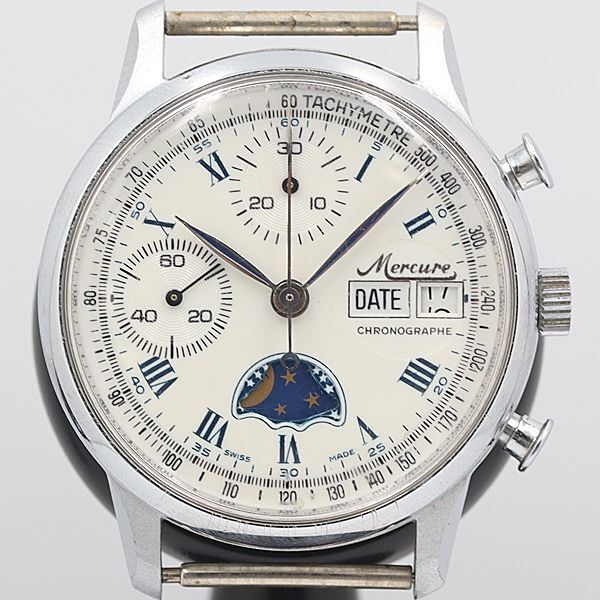 デッドストック級 稼働 良品 メルキューレ ムーンフェイズ クロノ デイデイト 白文字盤 手巻 トップのみ メンズ腕時計 OGH 9149ABC2000000