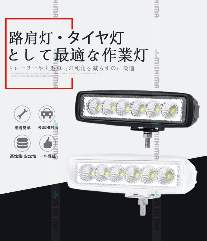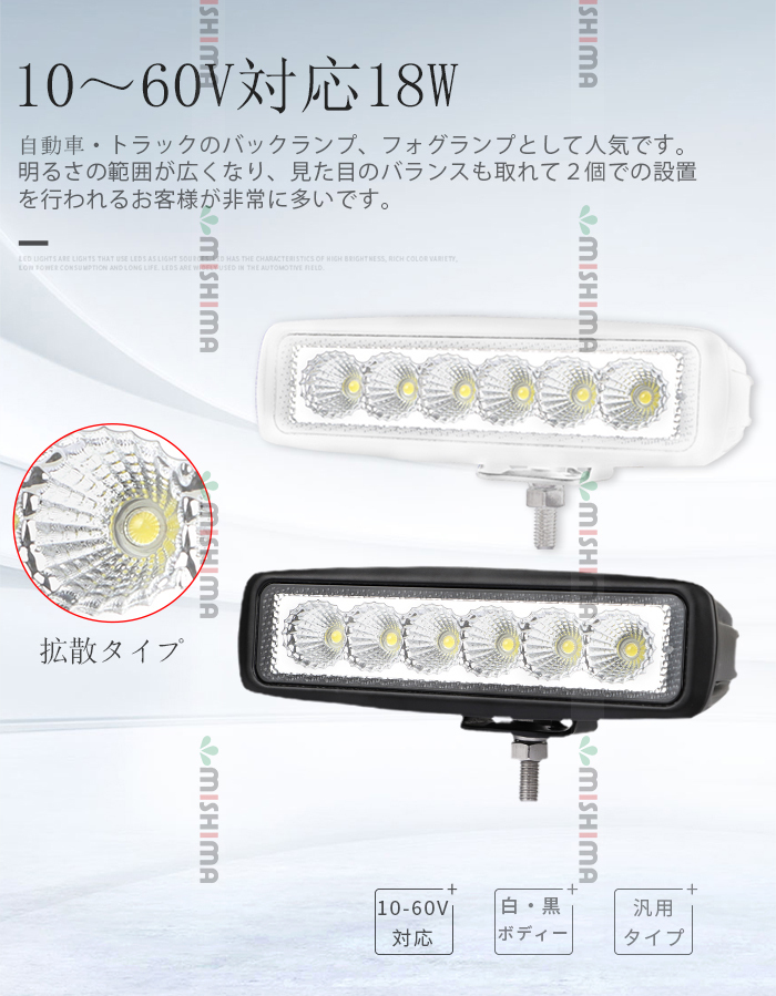 msm6018p-B 黒色 【単品】18W タイヤ灯 補助灯 LED ワークライト led作業灯 12V 24V 48V 60V 広角 拡散 路肩灯 バックランプ 軽トラ 荷台灯