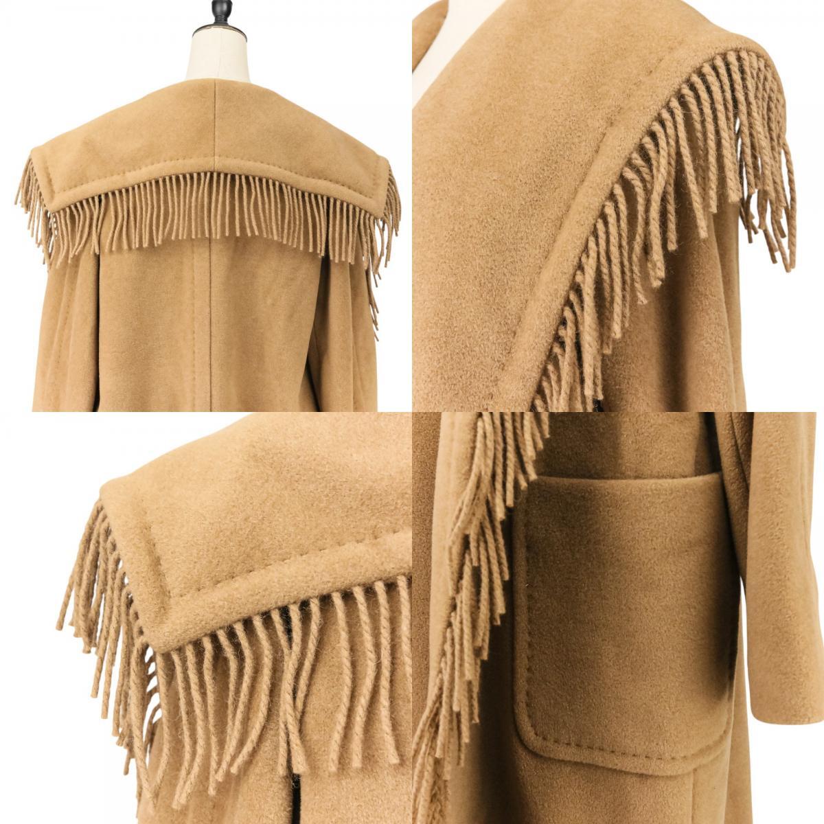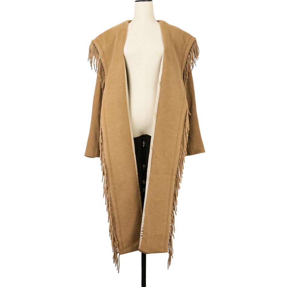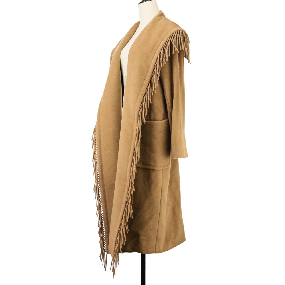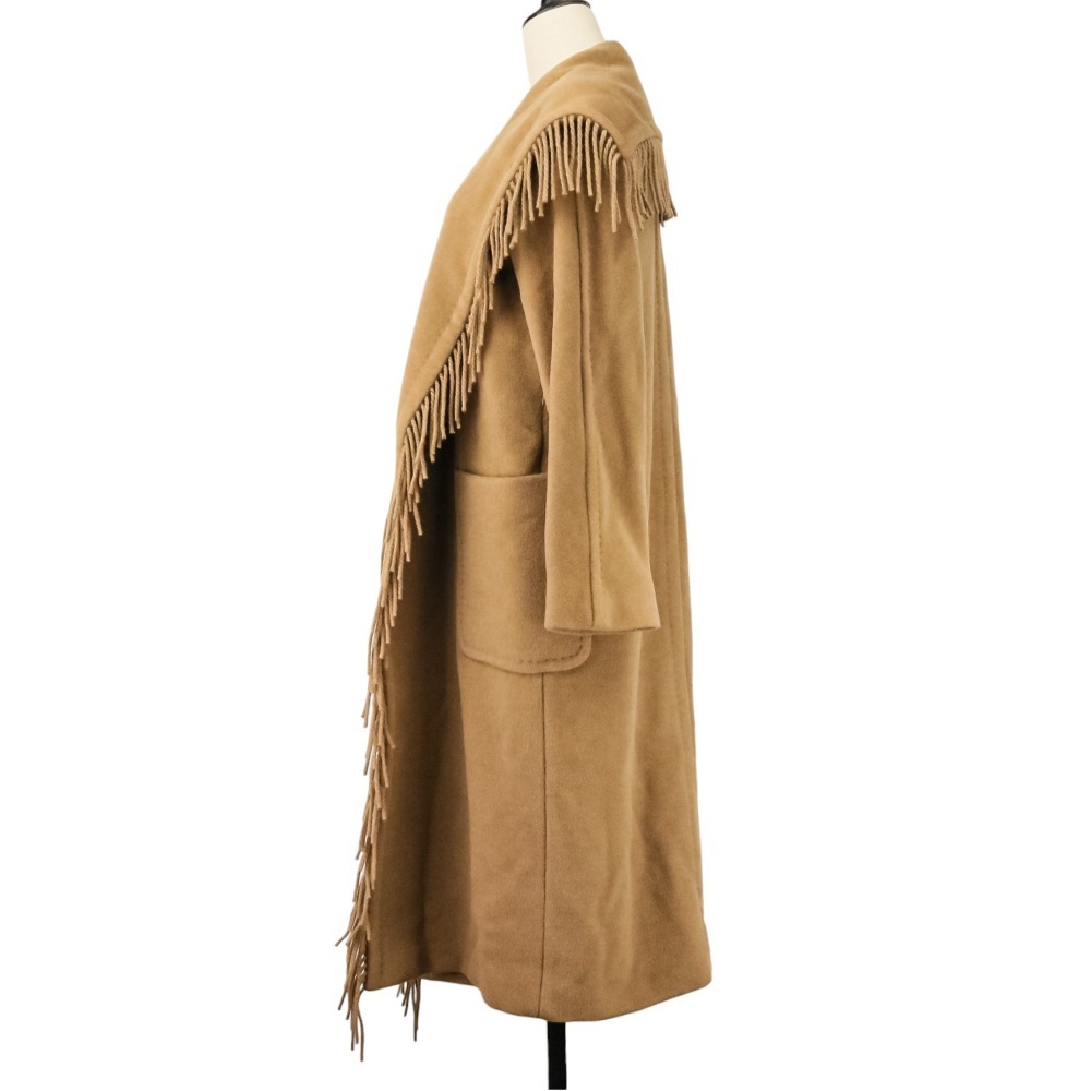良品 Max Mara マックスマーラ キャメル100% フリンジ ガウンコート 101601836 サイズ36 キャメル