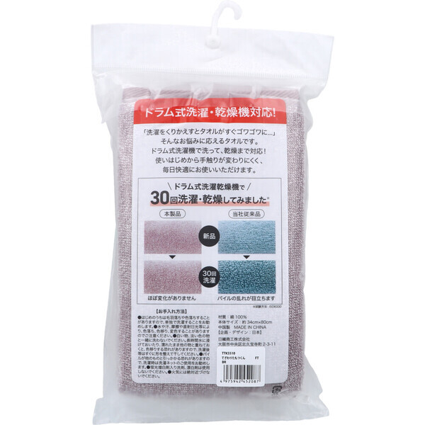 きれいなパイルが長持ち! じょうぶで長持ち! ドラム式洗濯・乾燥機対応! ・「洗濯をくりかえすとタオルがすぐゴワゴワに・・・」そんなお悩みに応えるタオルです。 ・ドラム式洗濯機で洗って、乾燥まで対応! ・使いはじめから手触りが変わりにくく、毎日快適にお使いいただけます。 個装サイズ:160X280X40mm 個装重量:約97g 内容量:1枚入 製造国:中国 【発売元:日繊商工株式会社】 【TTK5510】 【材質】 綿100% 【本体サイズ】 約34×80cm 【お手入れ方法】 ・はじめのうちは毛羽落ちや色落ちすることがありますので、単独で洗濯することをお勧めします。 ・水や汗、摩擦や直射日光等により、色落ち、色移り、変色することがありますのでご注意ください。 ・白い物、淡い色の物と一緒に洗わないでください。 長時間水に浸けて置いたり、濡れたまま他の物と重ねておくと、色移りする恐れがありますので、洗濯後等はすぐに形を整えて干してください。 ・パイルが他のものと引っかかる恐れがありますので、洗濯時は洗濯ネットのご使用をお勧めします。 ・蛍光漂白剤入り洗剤、漂白剤は使用しないでください。 ・火気には絶対近づけないでください。 注意事項 ※予告なく成分・パッケージが変更になることがございます。 予めご了承ください。 *予告なく成分・パッケージが変更になることがございます。予めご了承ください *ダンボールを使用して発送する場合には、入数以下の個数の場合、 中古ダンボールを使用する場合があり、ご注文の商品とは異なるダンボールになる場合があります。 あらかじめ、ご了承ください。 |