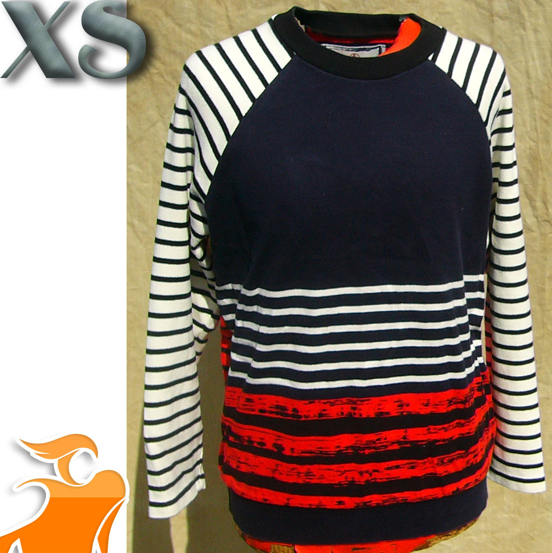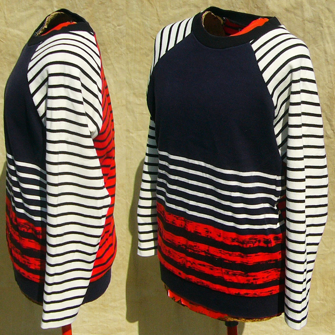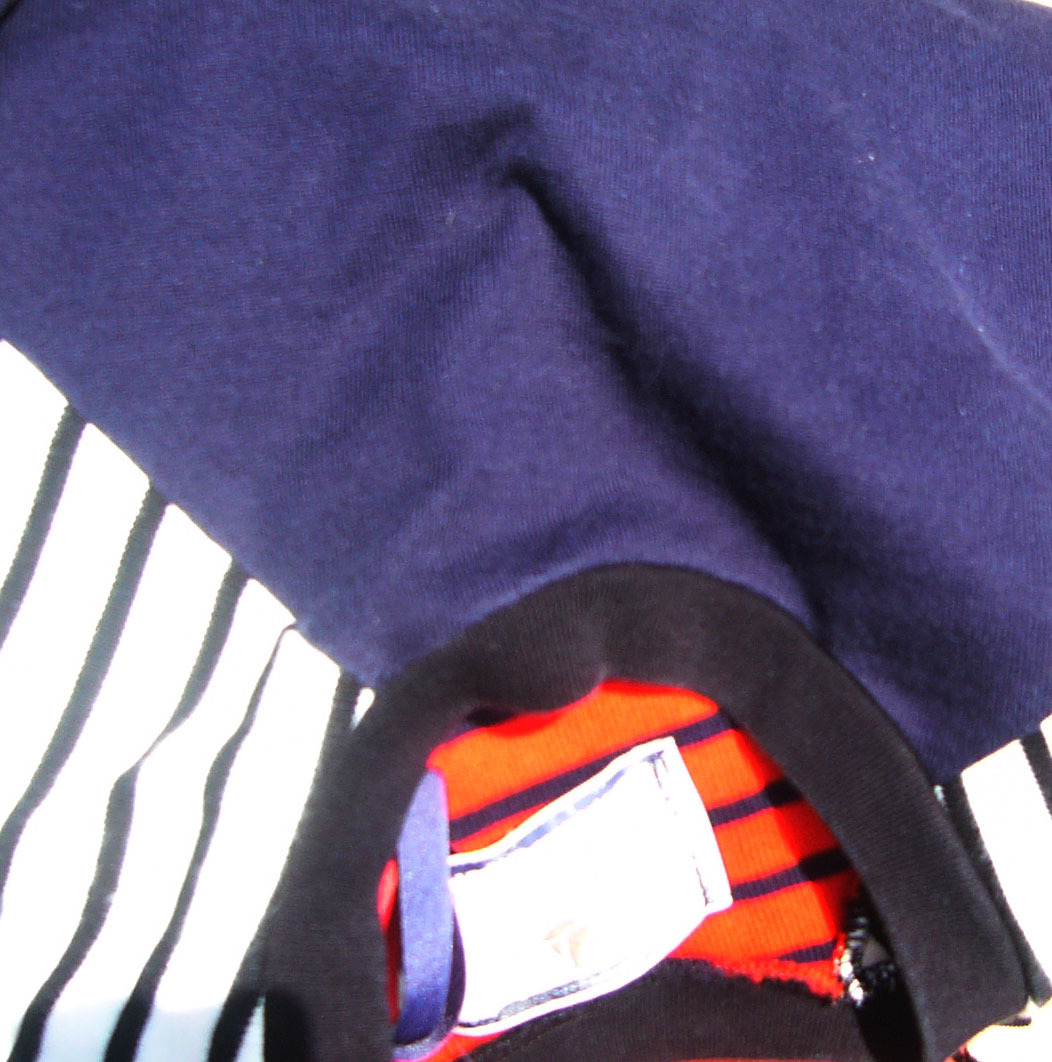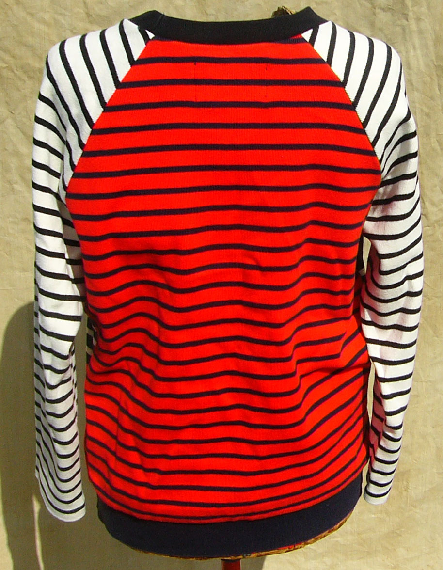 ネイビーと白にオレンジの逆襲 袖丈は8部丈ぐらい、レディースのブランドかと思ったのですが、サイズ的にはメンズのXSになります