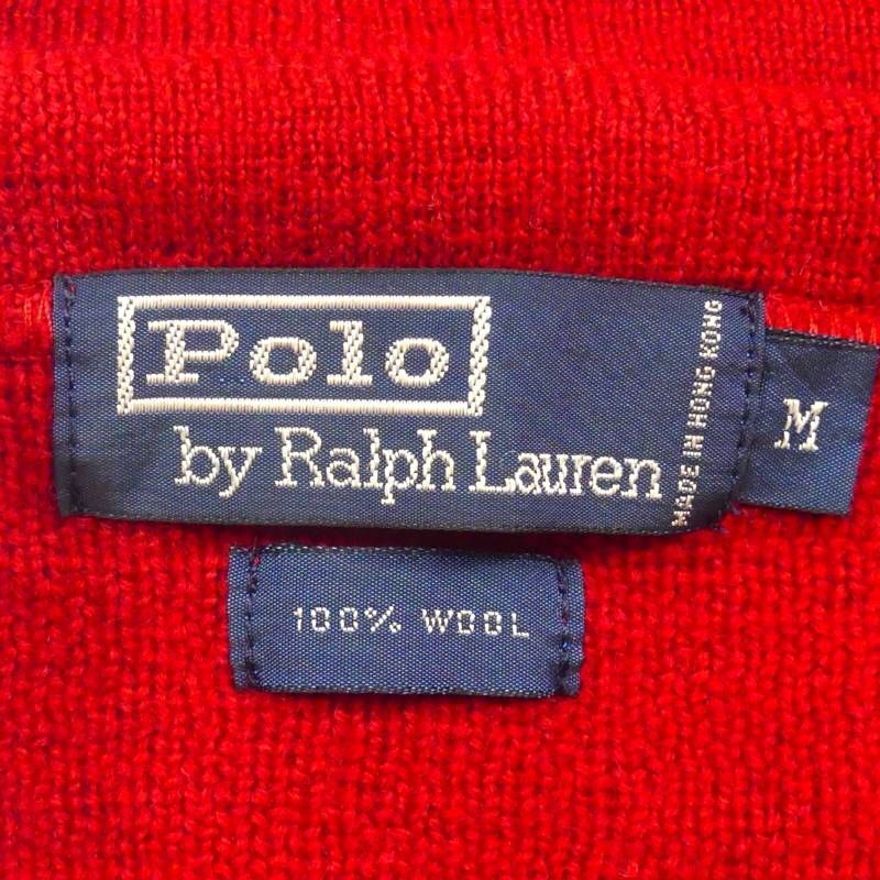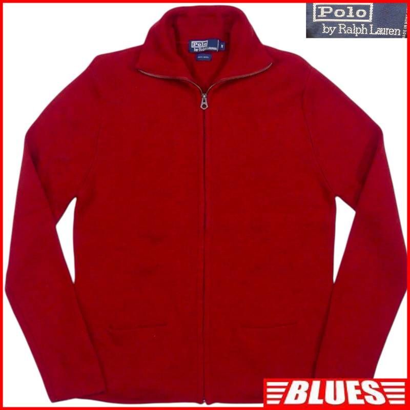 即決★POLO RALPH LAUREN★メンズ M カーディガン ウール ニット セーター ラルフローレン 赤 古ジップ ドライバーズニット