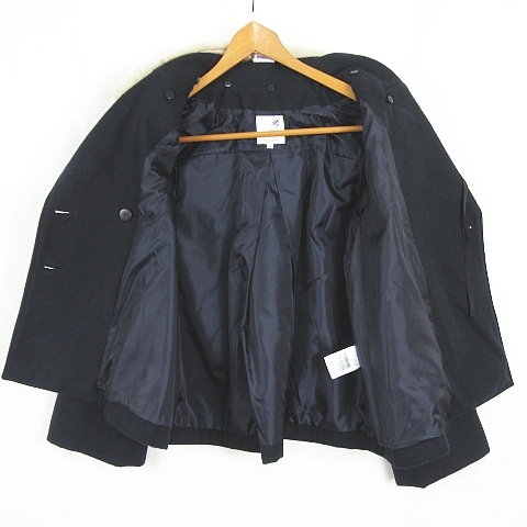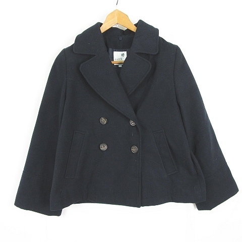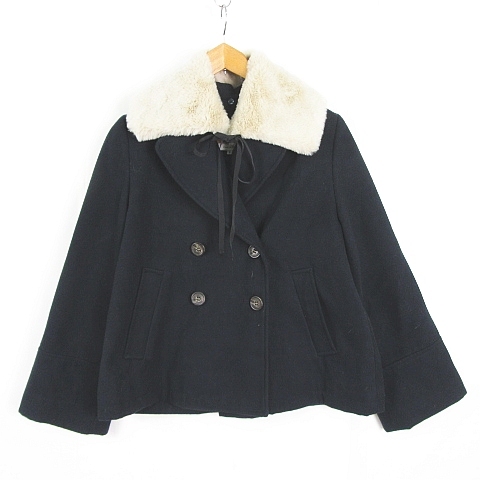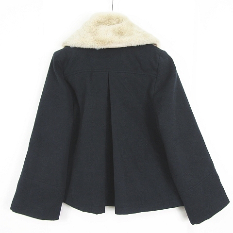 アースミュージック&エコロジー EARTH MUSIC & ECOLOGY コート ダブル ショート丈 ファー ストレッチ レーヨン S ネイビー kz12750 レディース