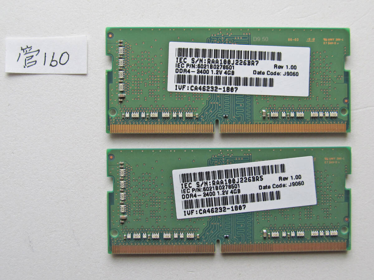 ★送料無料!★Samsung ノートPC用メモリー★DDR4-2400 (PC4-19200) 4GB ×2枚 計8GB★動作確認済み 中古品★管160★