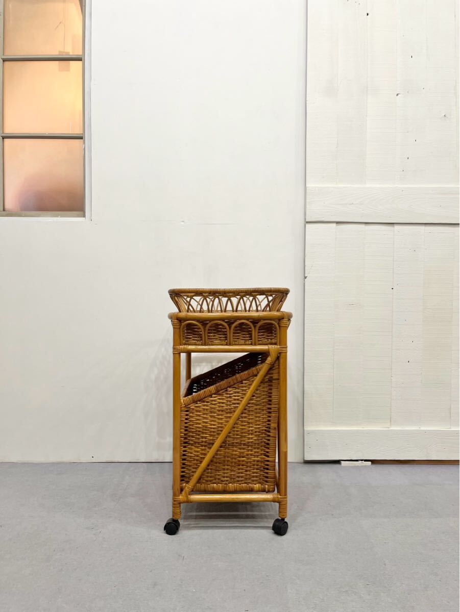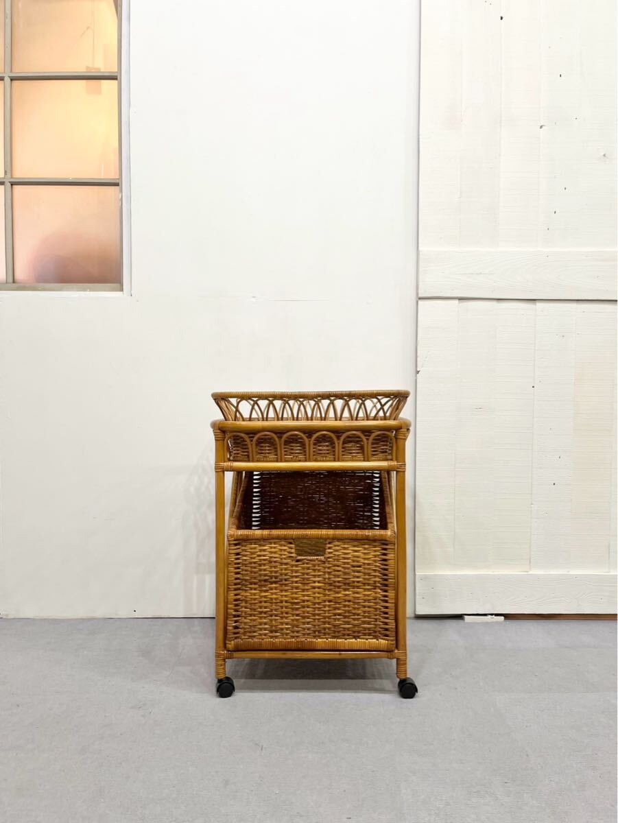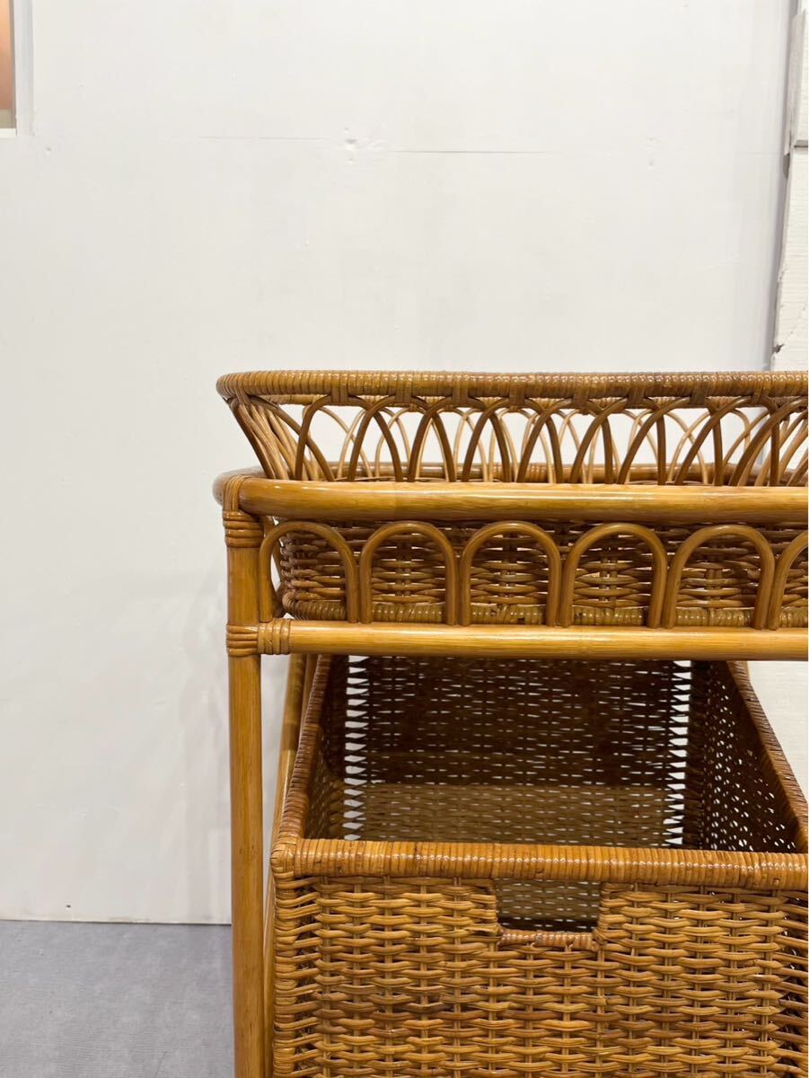ラタンのランドリーシェルフ キャスター付!かご付き! 収納 レトロ おしゃれ チェスト 引出し 天然素材 大阪市内引取歓迎