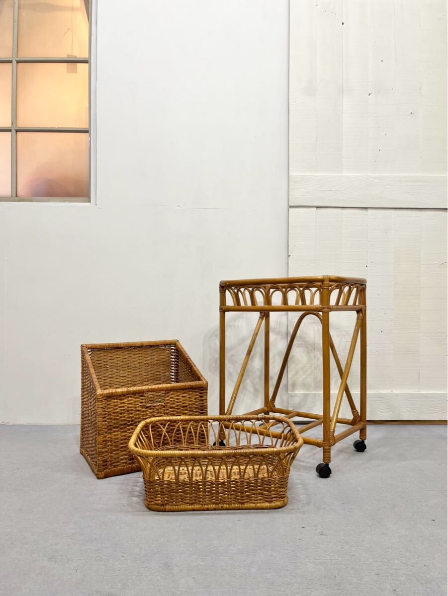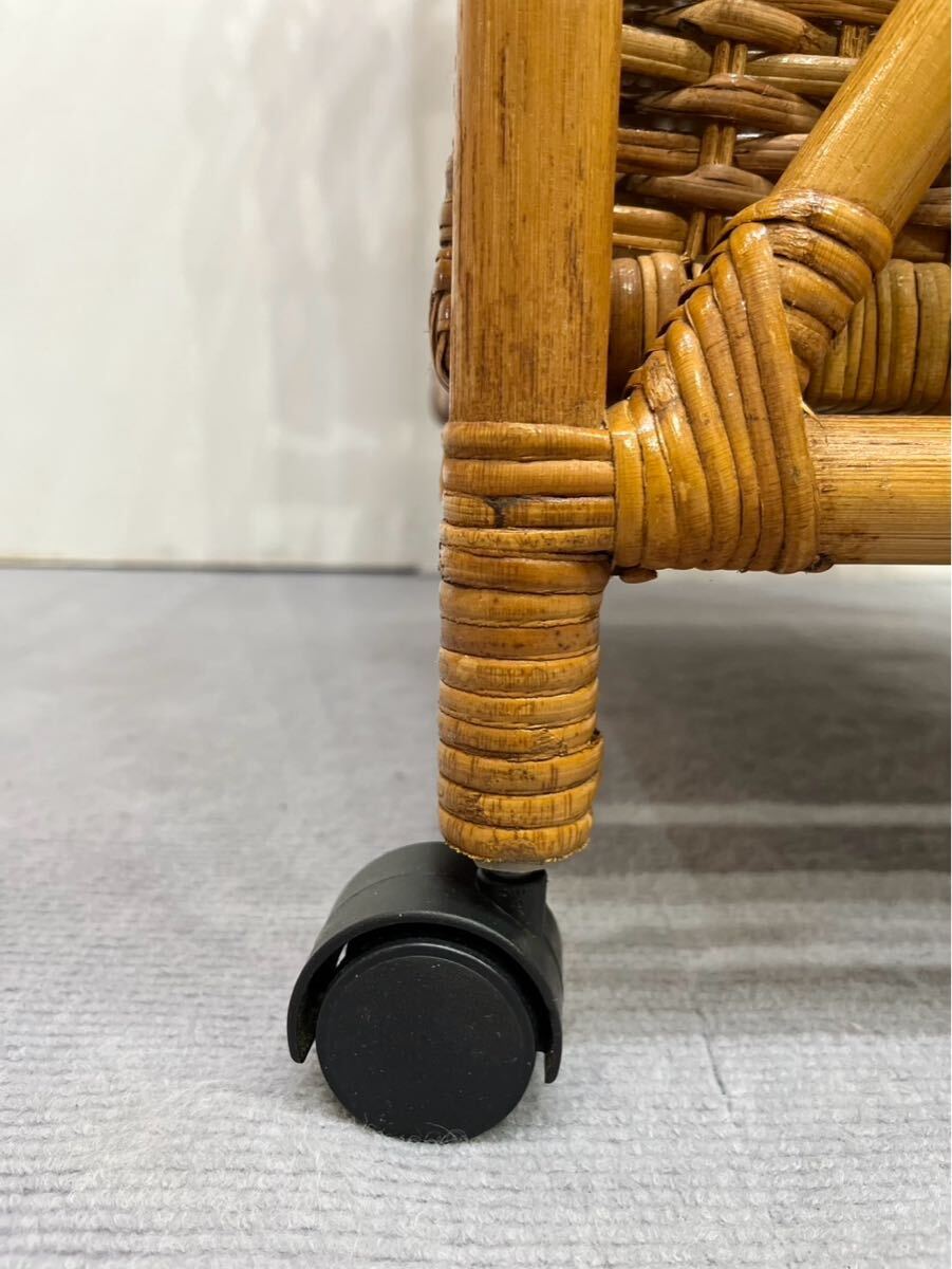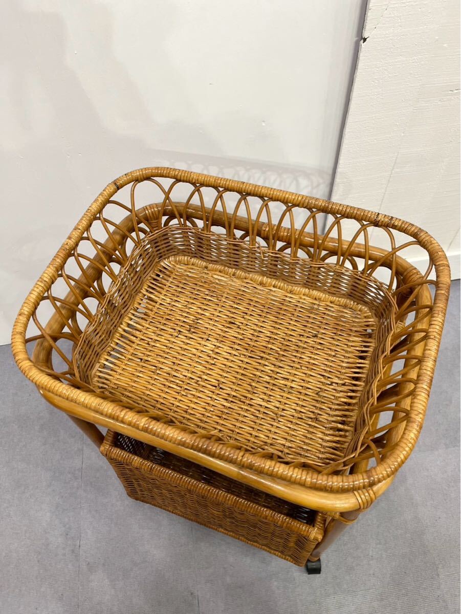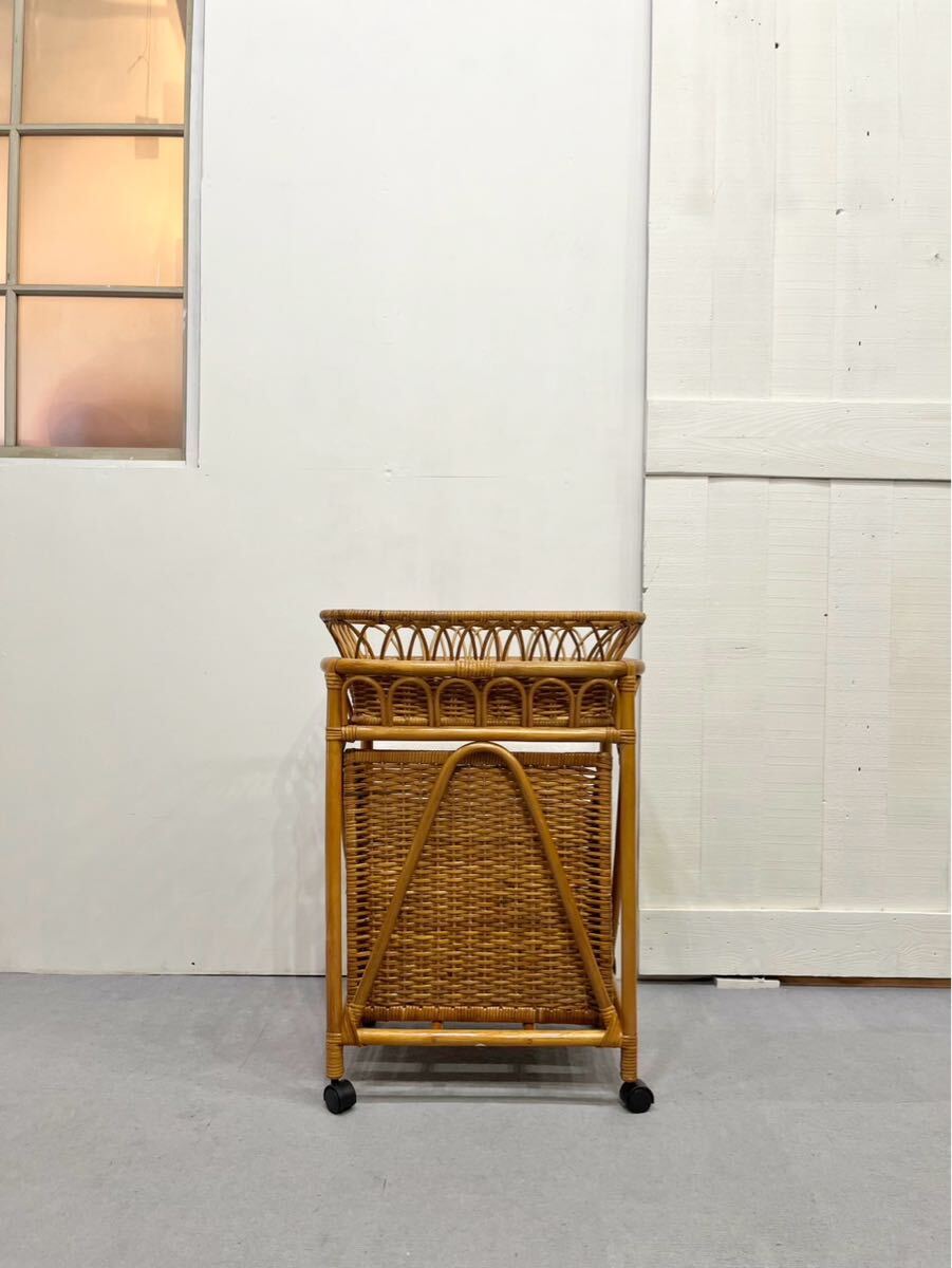ラタンのランドリーシェルフ キャスター付!かご付き! 収納 レトロ おしゃれ チェスト 引出し 天然素材 大阪市内引取歓迎