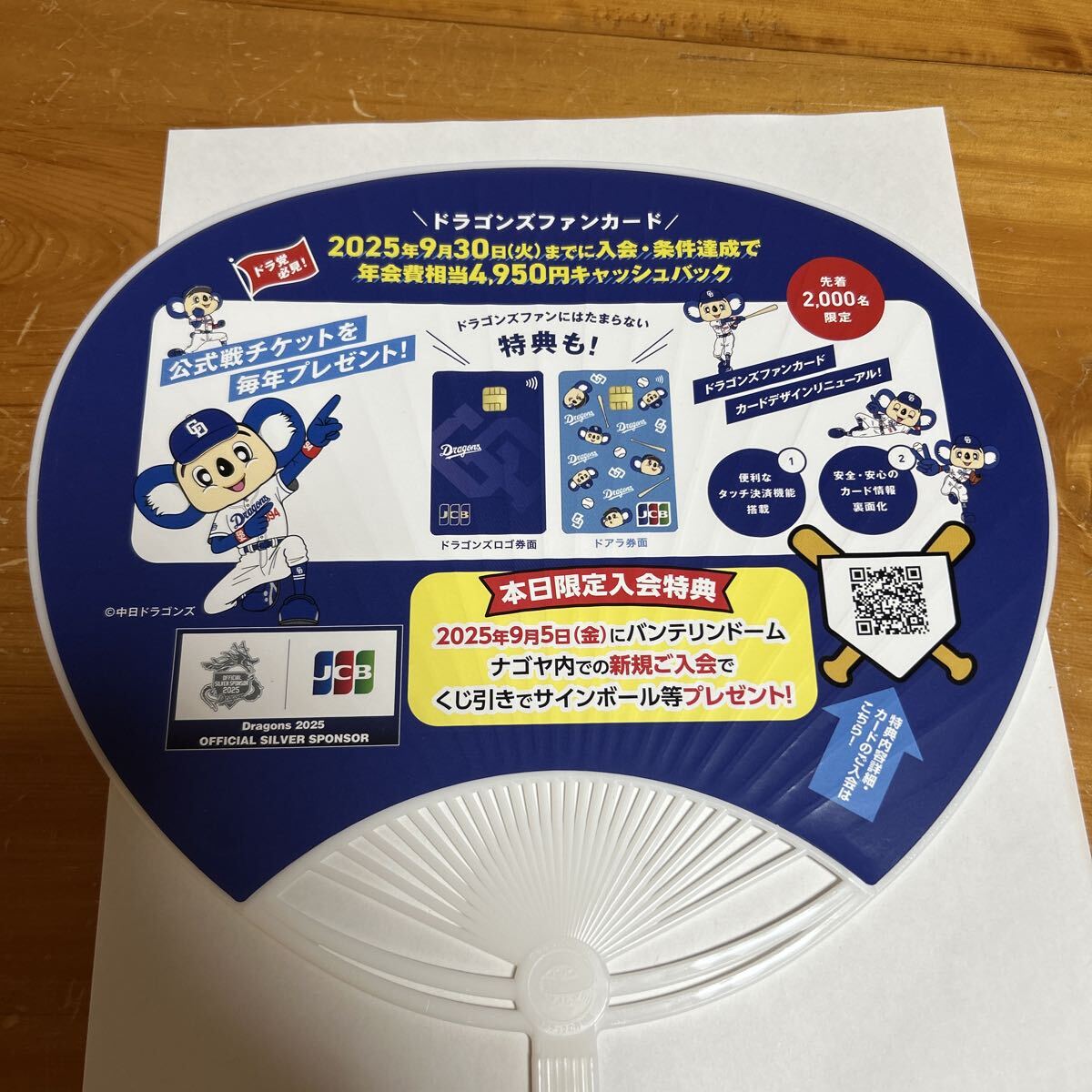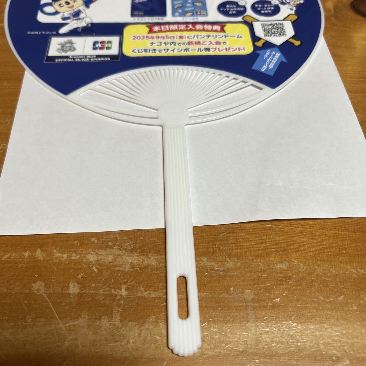 うちわ 中日ドラゴンズ 2025 サイズ縦手持ち含めて34センチ 手持ちなし21.5センチ 横24.5センチ 非売品 送料無料の出品です。(自己紹介一読し落札願います。)