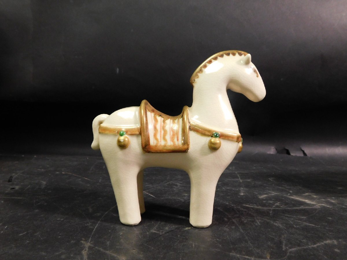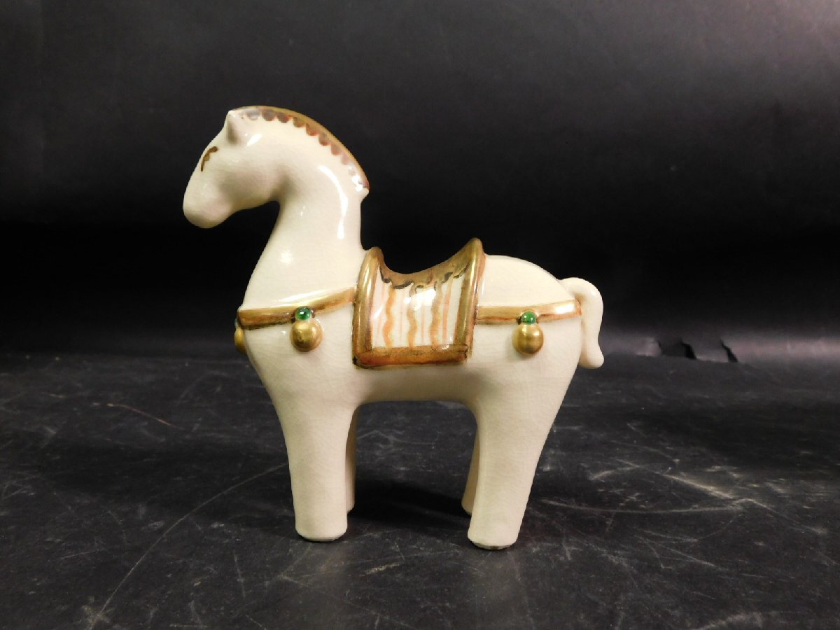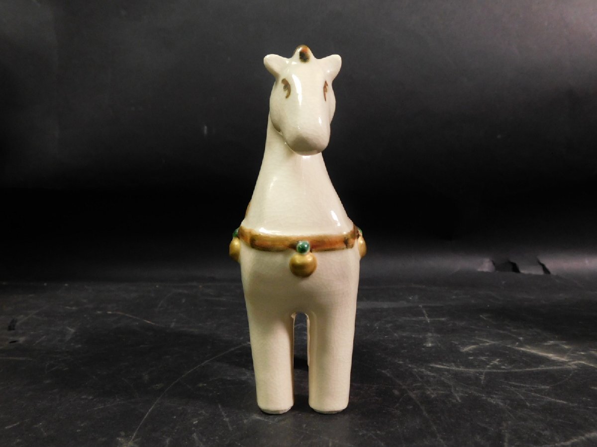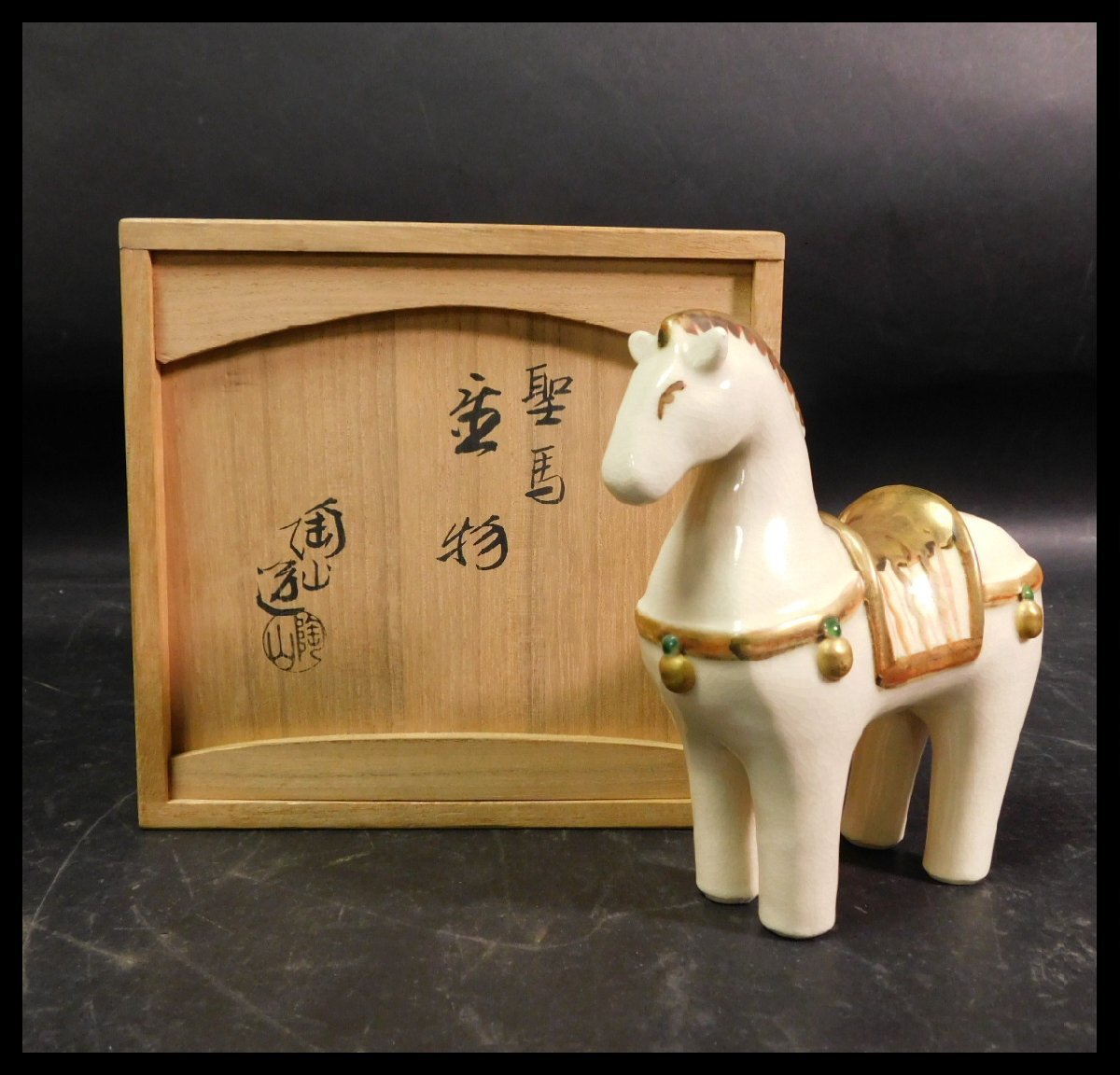 三代伊東陶山 聖馬 置物 共箱 干支 粟田焼 長期保管品 w250323