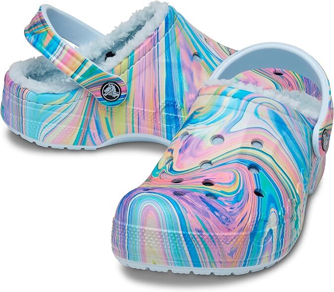 25cm クロックス バヤ ラインド プリンテッド クロッグ ミネラルブルー マルチ Baya Lined PRINTED Clog Mineral Blue / Multi M7W9 ボア 新品