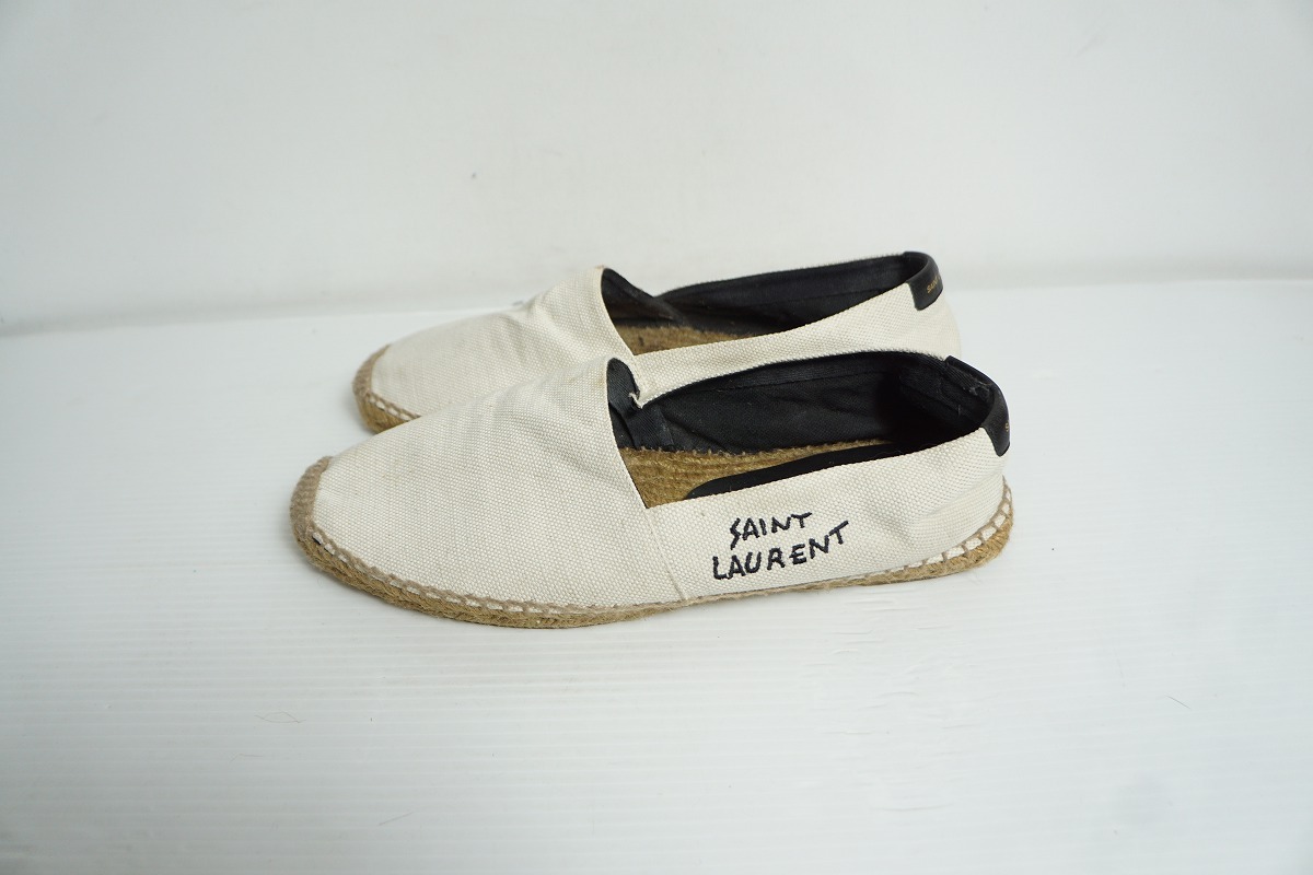 正規 SAINT LAURENT PARIS サンローランパリ エスパドリーユ スリッポン メンズ シューズ 靴 サンダル キャンバス 白 EU 41 JP 26 本物です。
