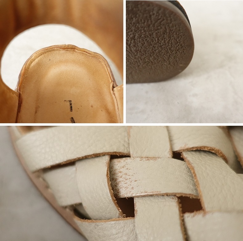| ユーズドでかかと内側、インソール、アウトソールにうっすら擦れ汚れ、かかとソールに少し減り、つま先やかかと辺りに少し擦れ汚れ、ストラップのバックルが当たる部分に少し緑青が見受けられます。 レザー製品ですので、使用頻度に関わらず付いたキズなどがあるかと思われます。 ご理解いただける方のご購入をお待ちしております。 |