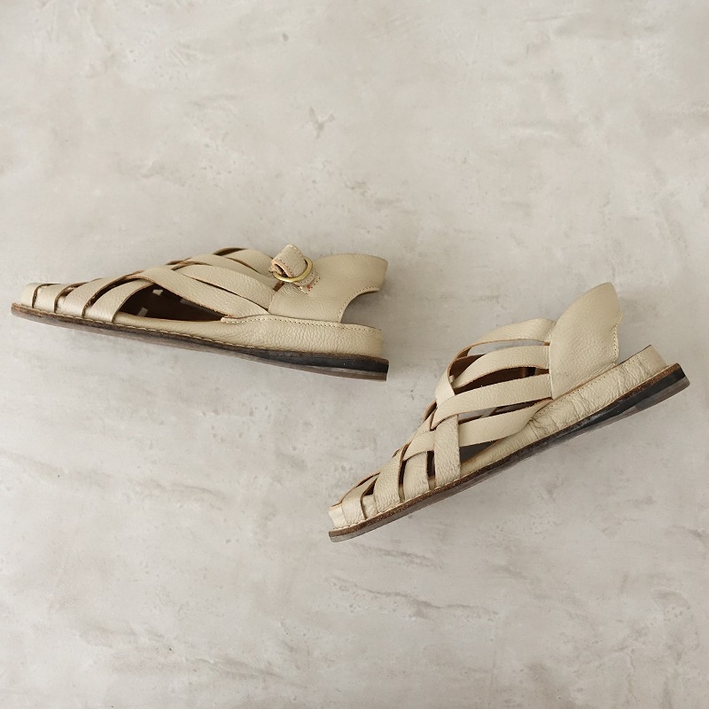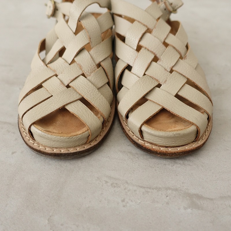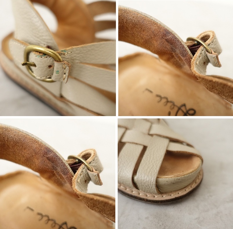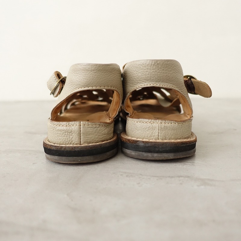| Dieeのレザーメッシュサンダルです。カラーはグレーベージュで素材はレザー、3段階に調節可能なストラップで着脱していただけ、インソールはクッション性がございます。 |