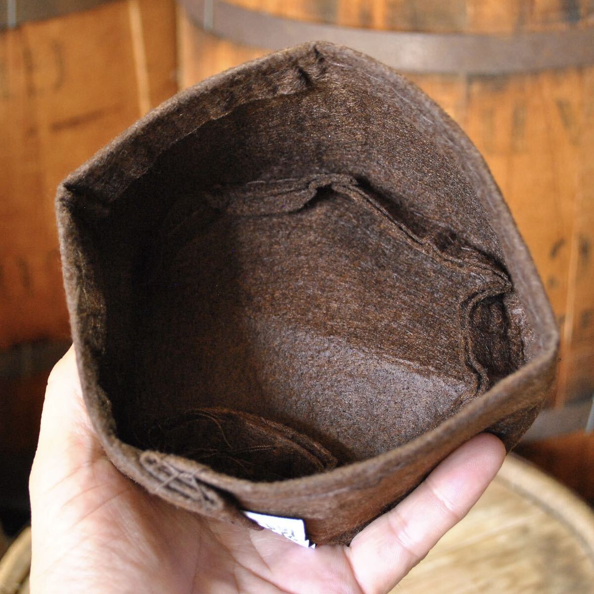 リサイクルペットボトルと天然素材をミックスして作れた不織布製。