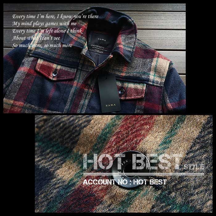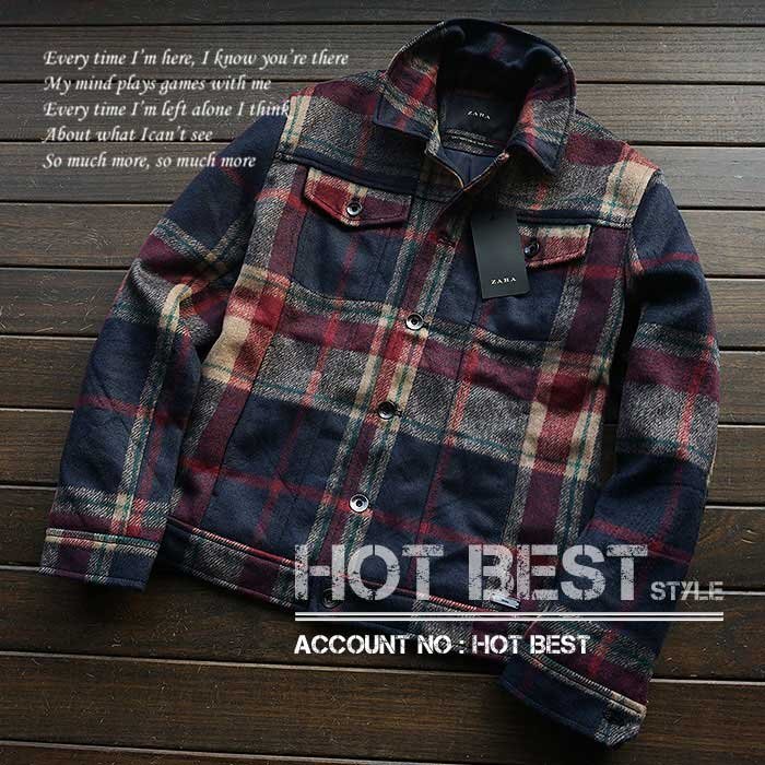 EU発★■完売◆スペインZRA*メンズ 高品質 カシミヤ感 ウール チェック ジャケット ゆとり サイズ 表記L【XL程度】
