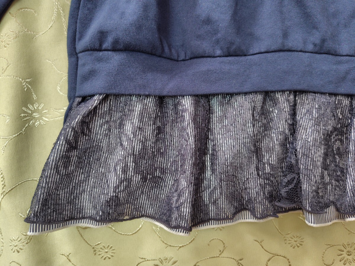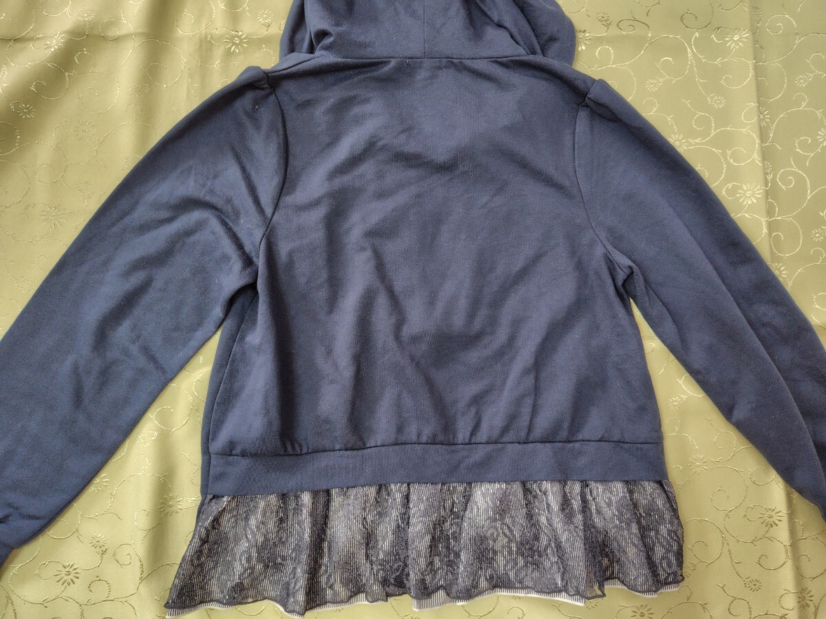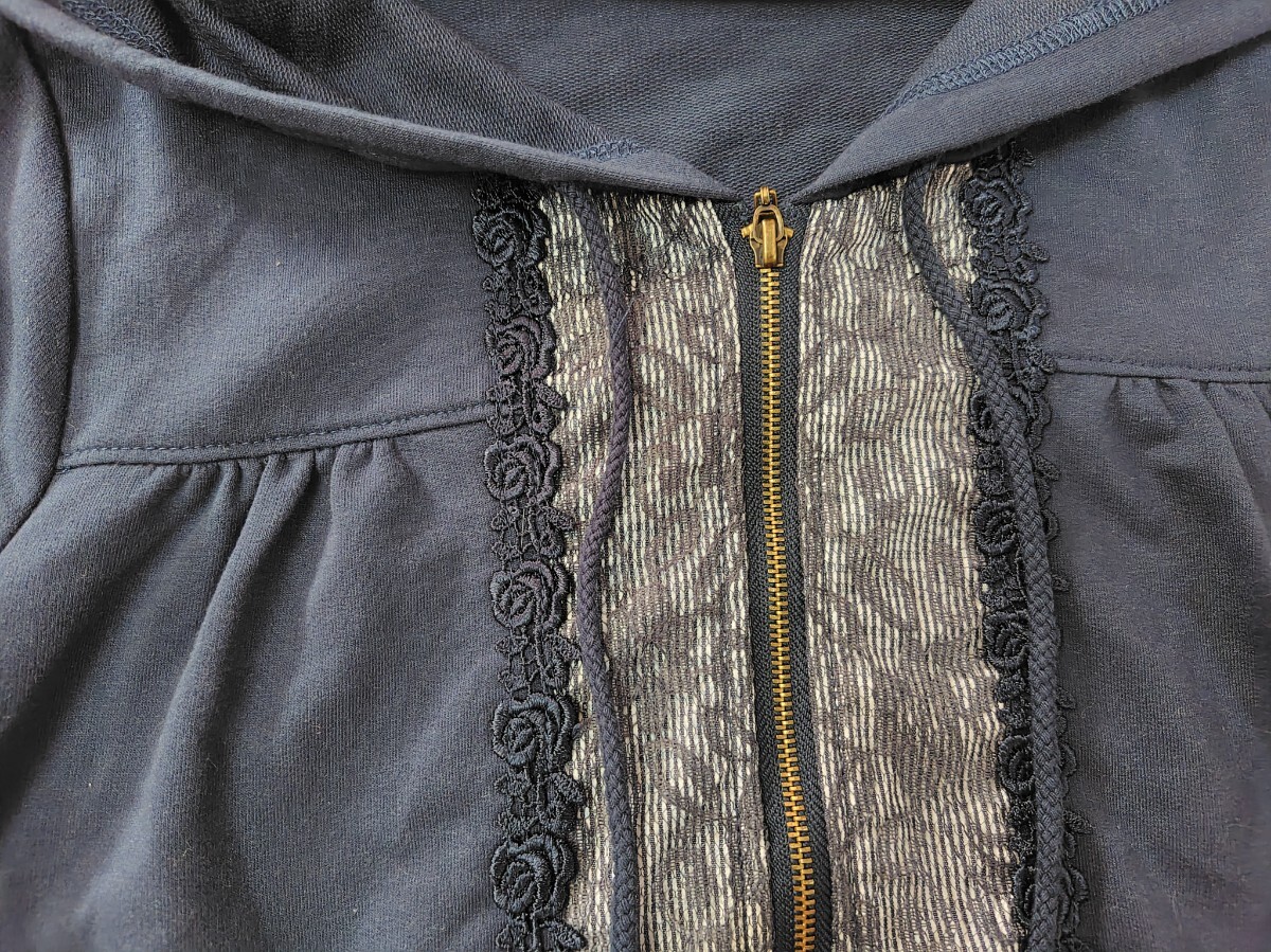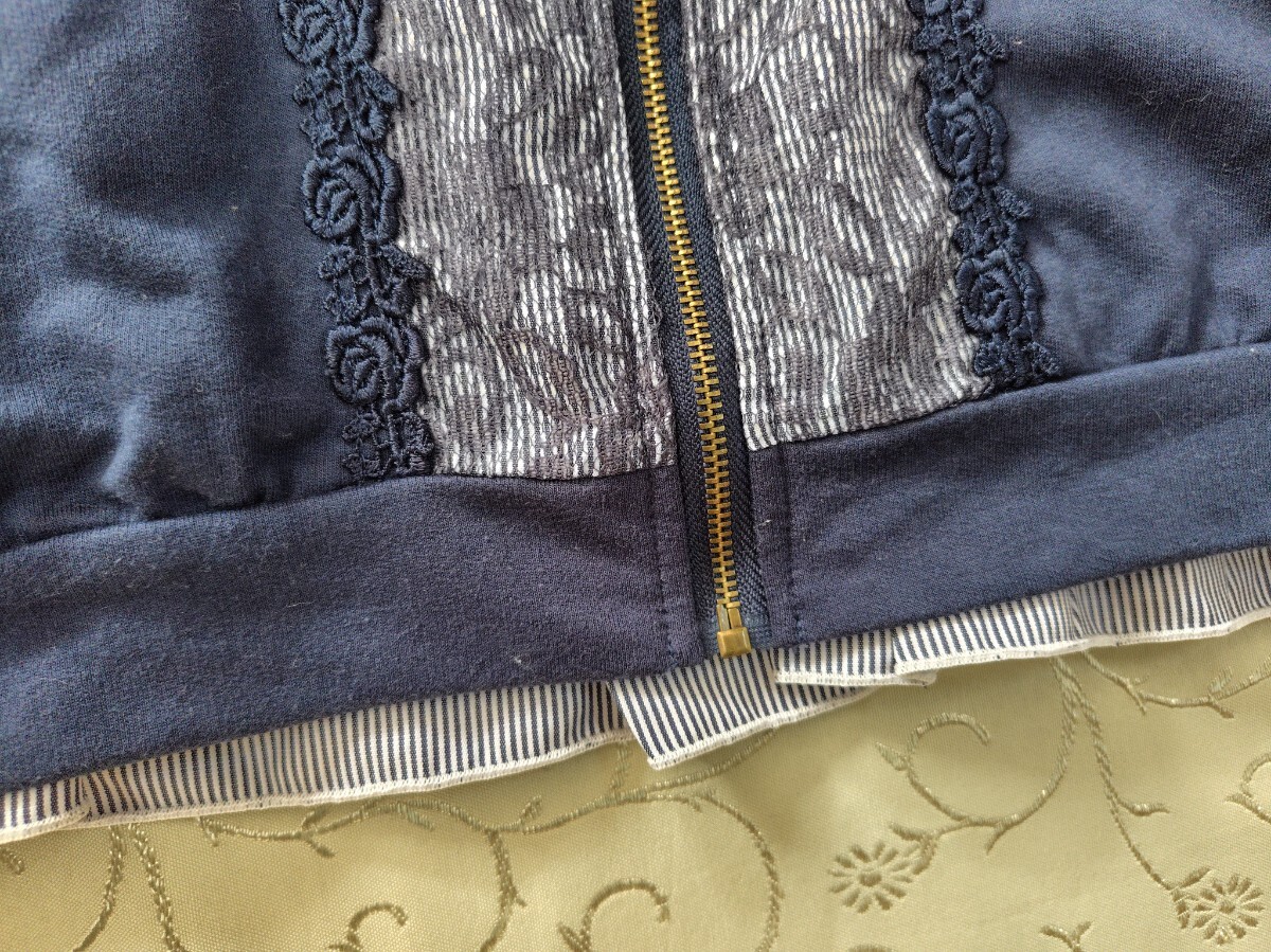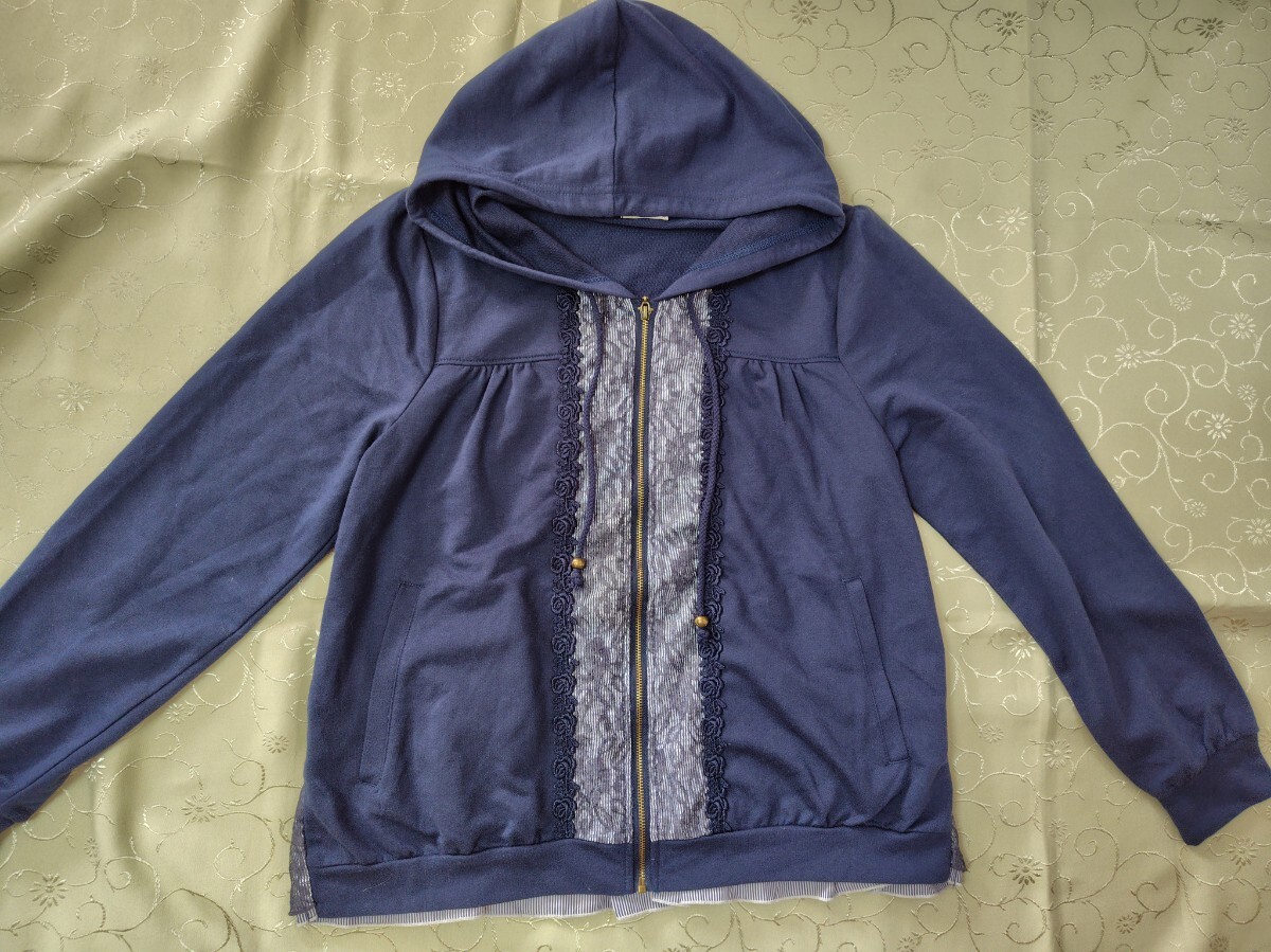 アクシーズファム レース使いのストライプ切り替えパーカー ネイビー