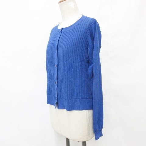 タバサ TABASA ニット カーディガン 長袖 クルーネック 青 ブルー 綿 麻 青 ブルー レディース