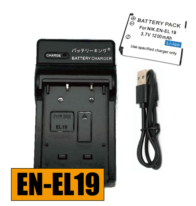 【送料無料】 バッテリー&充電器 NIKON EN-EL19 ENEL19 MH-66 ニコン USB付き 急速充電器 AC充電対応 シガライター充電対応 互換品