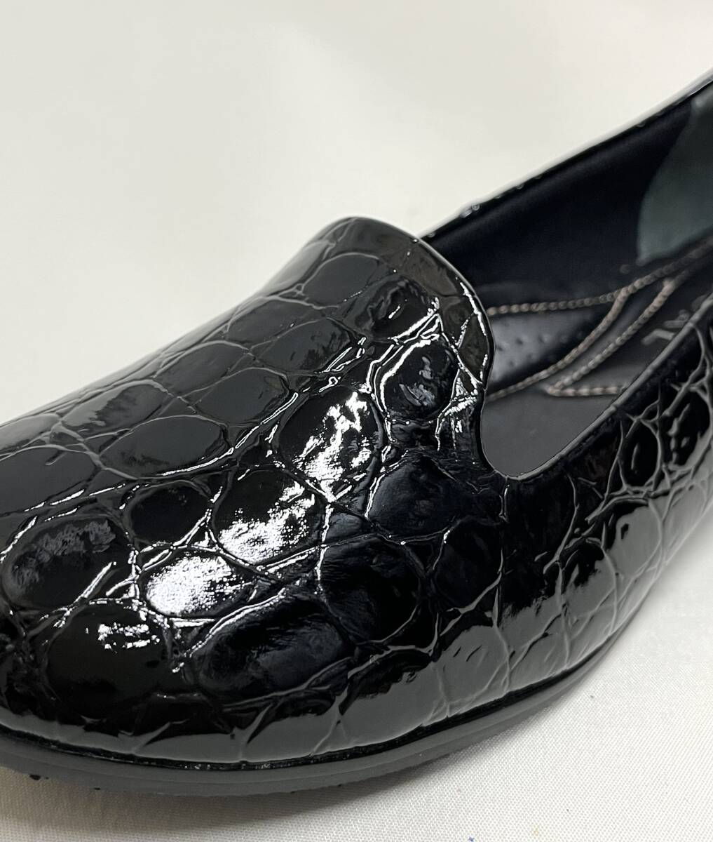 商品に ついて | <サイズ>22.5cm <カラー>型押しブラック ヒール2cm 定価¥13000 ※箱付きですが、へこみ・汚れ等ありますのでご了承ください |