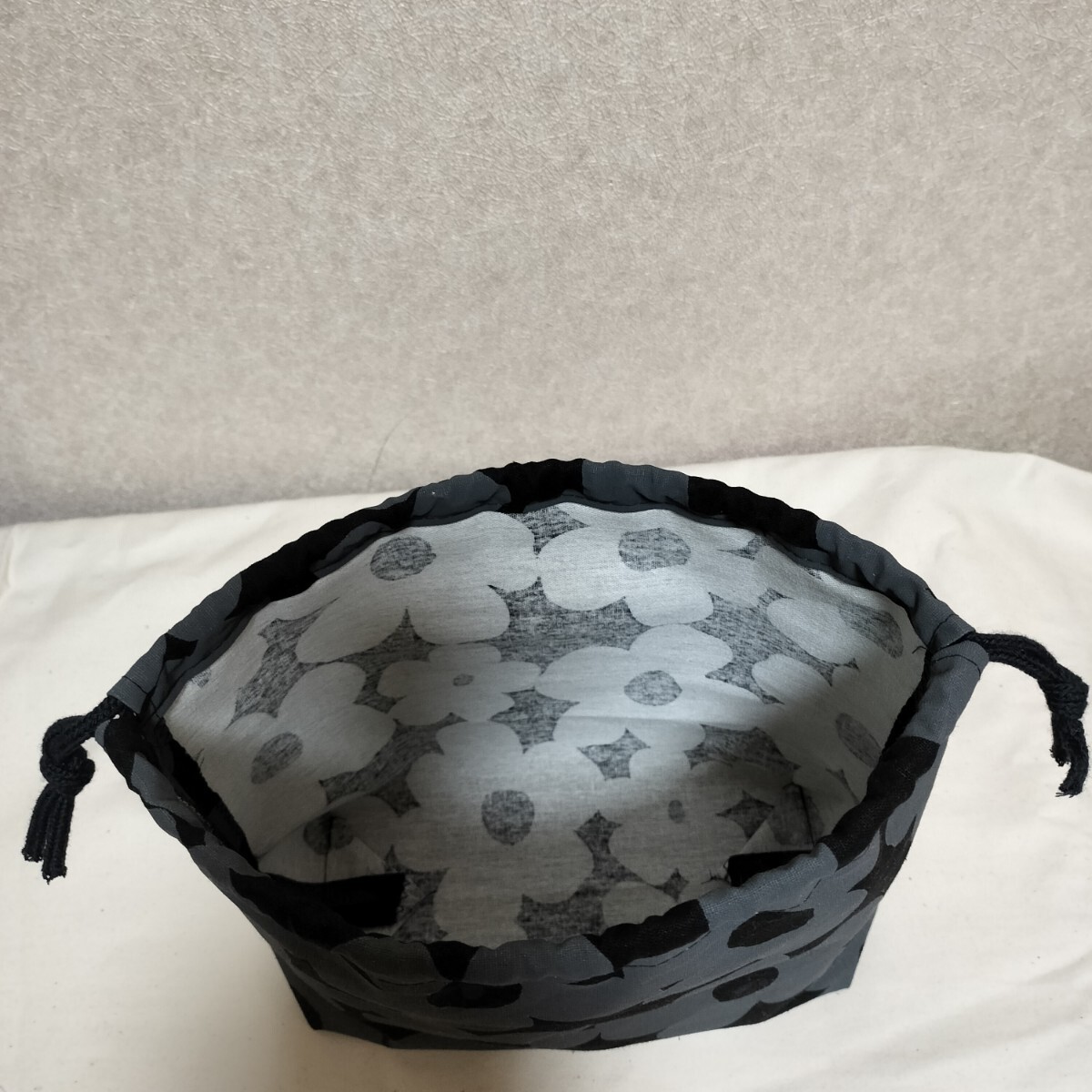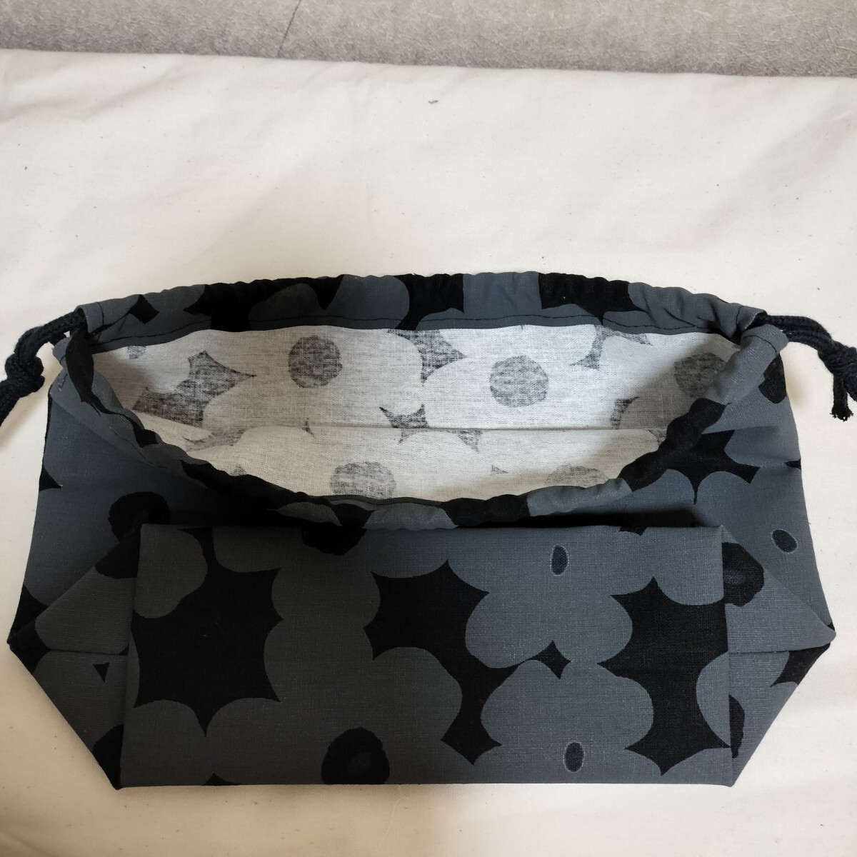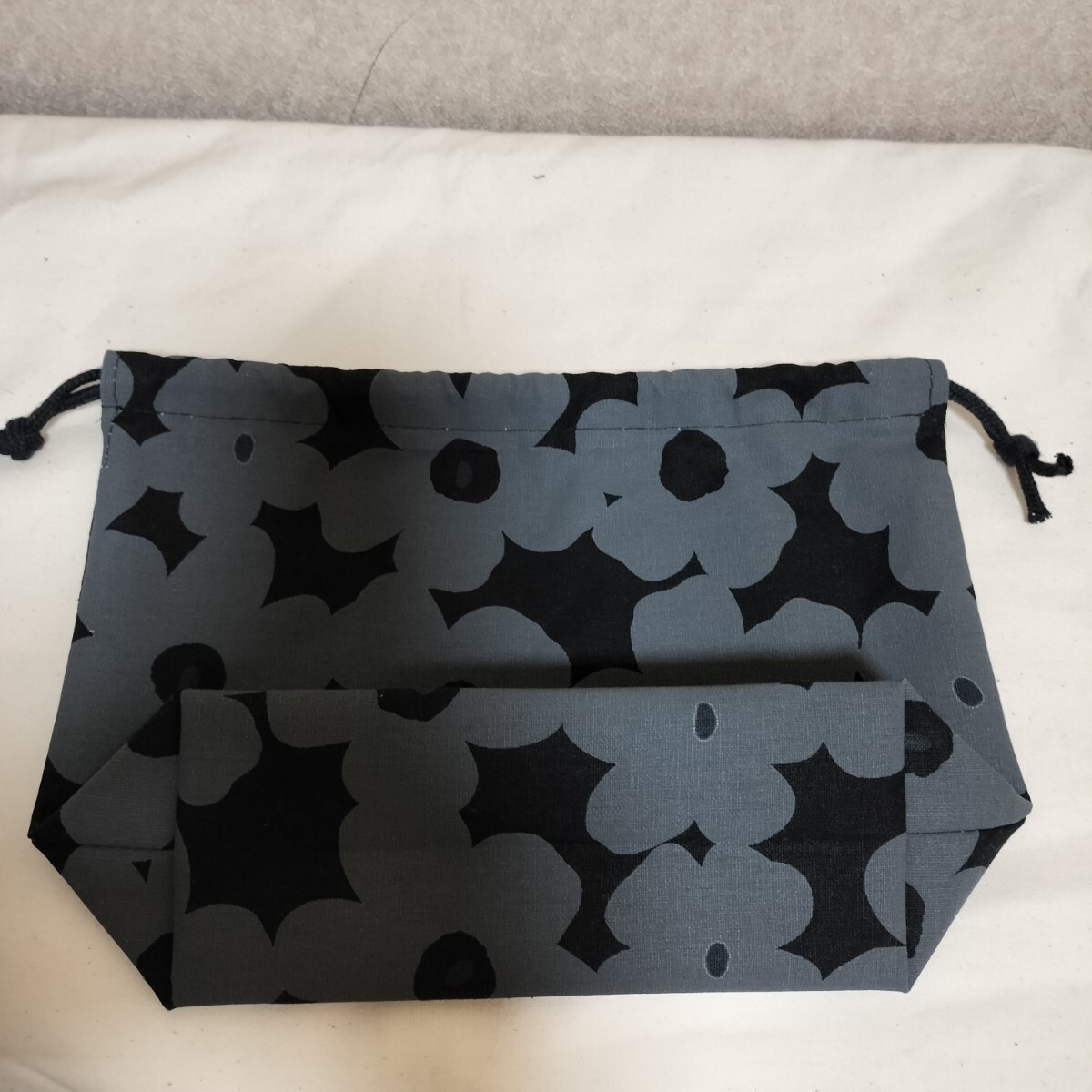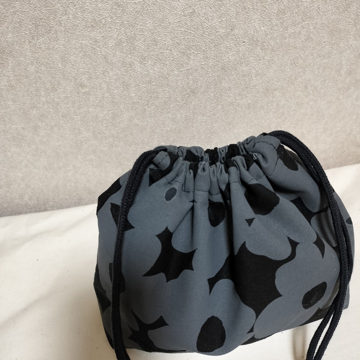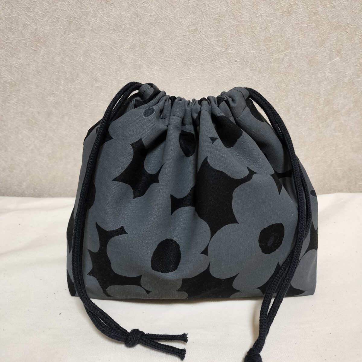 キャンバス生地、花柄の巾着袋です。お弁当袋、ポーチ、小物入れなどにいかがでしょうか。