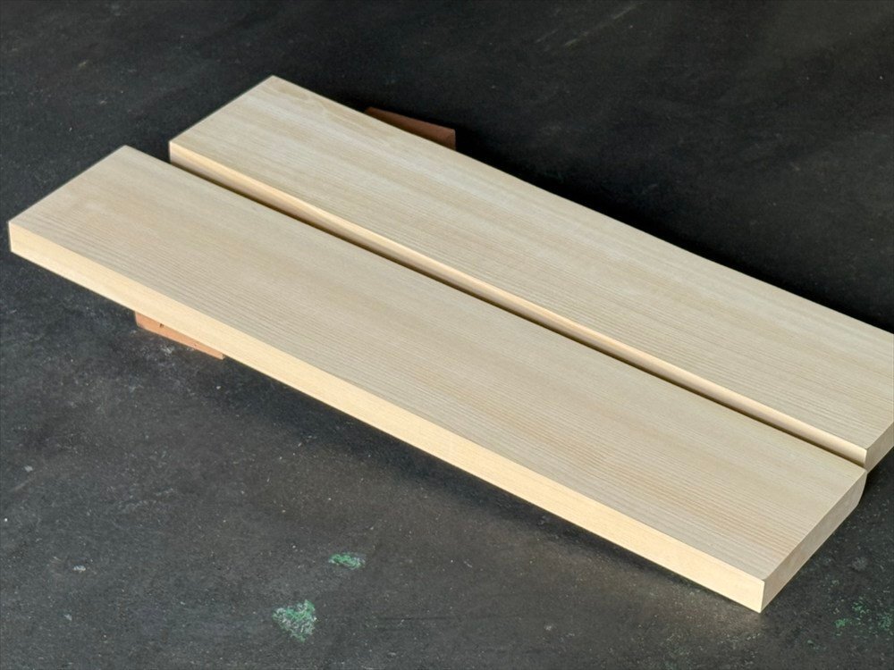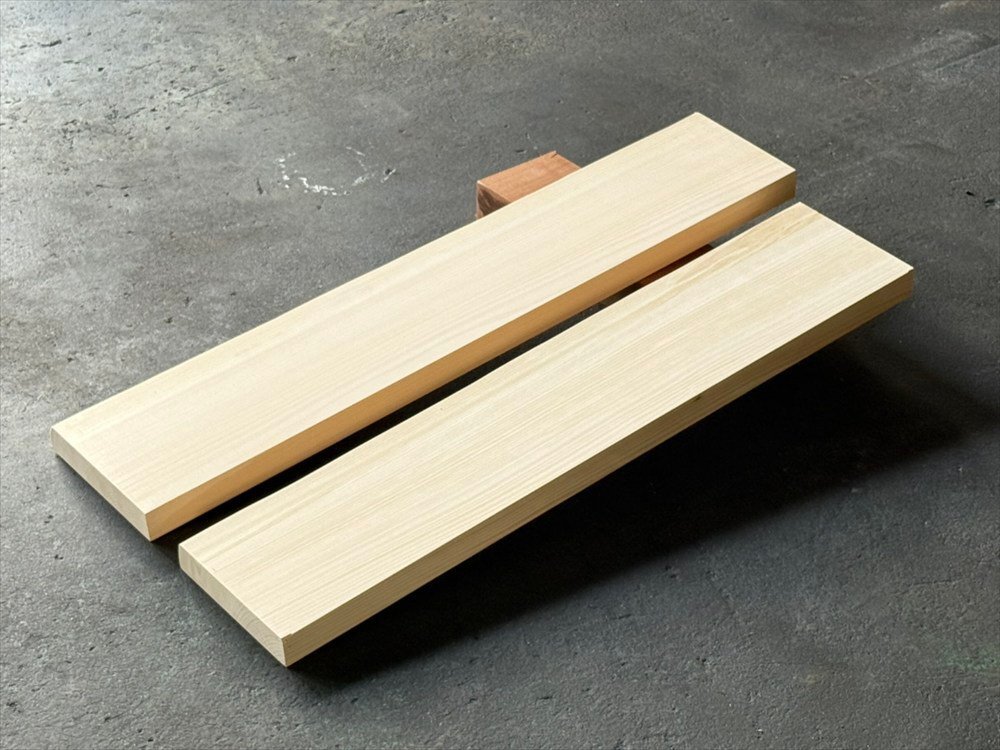 上質な東濃ひのきの一枚板から切り出した、天然無垢材のセットです。 ■DIYにぴったりの未塗装仕様 未塗装なので、お好みの仕上げや塗装が自由自在。 使い方はあなた次第── 壁付け棚・クローゼット棚・本棚・食器棚 飾り棚・収納棚・カウンター・ベンチ・花台 テーブル天板や玄関ステップにも! ■世界に一つだけの天然木 天然無垢材ならではの木目・色合いの個性が際立ちます。 集成材や化粧板にはない、本物の質感をご体感ください。 一点一点、違った表情を持つ、あなただけの特別な一枚です。 木の香りと温もりを暮らしに取り入れる、贅沢なDIY素材としておすすめです。 ※十分乾燥させた木材ですが、天然素材ゆえに季節や環境の変化で 反りや曲がりが生じる場合があります。 ※表面や端部に多少の汚れ・傷・反り・割れなどがある場合がございます。 加工を前提とした荒材としてのDIY用素材とお考えください。