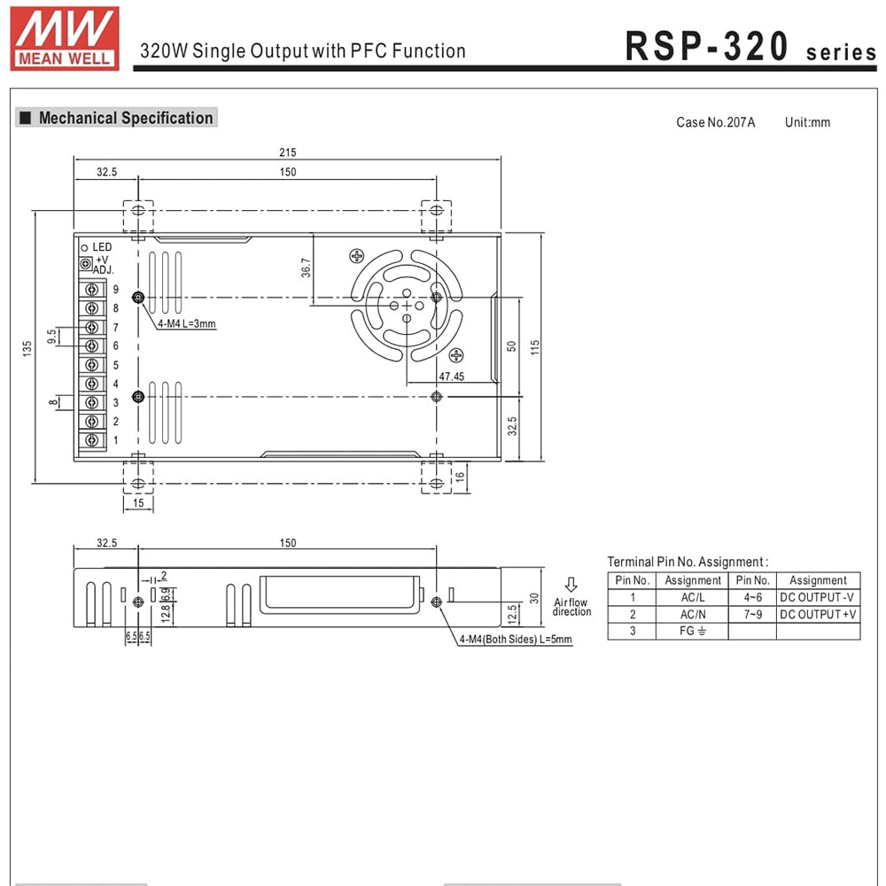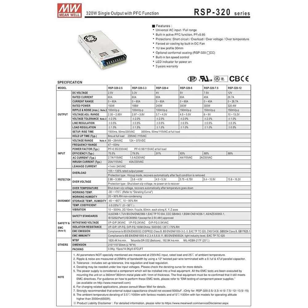 最大出力:320W  出力電圧:12V  出力電流:26A  入力周波数:47-63Hz