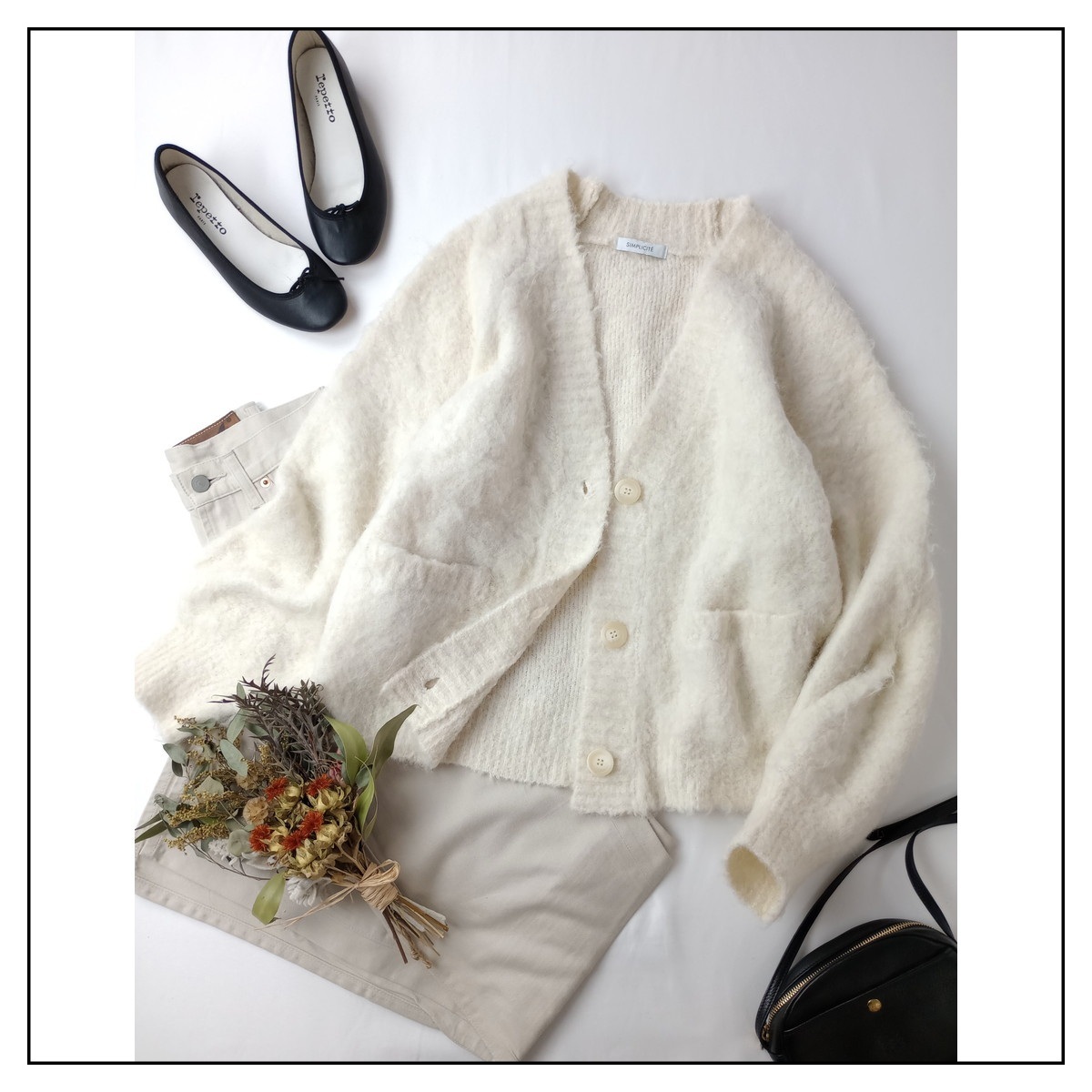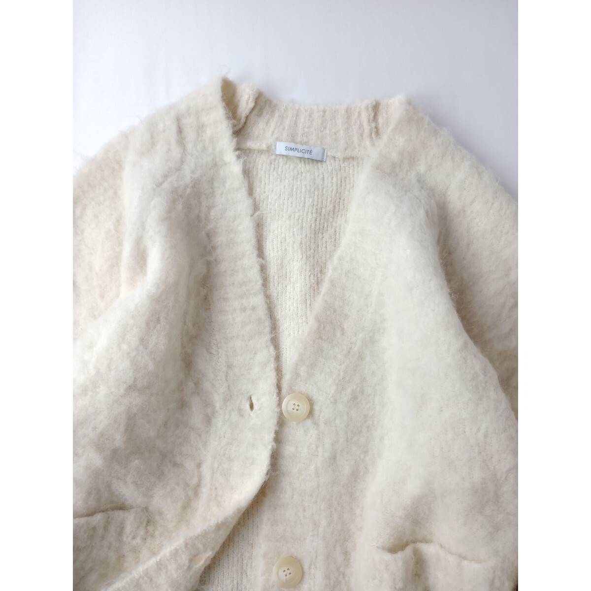 24年製 Simplicite サンプリシテ シンプリシテェ「ピュアさ、際立つ。」ウール 毛 混 シャギー ニット カーディガン 長袖(21M+5196)●