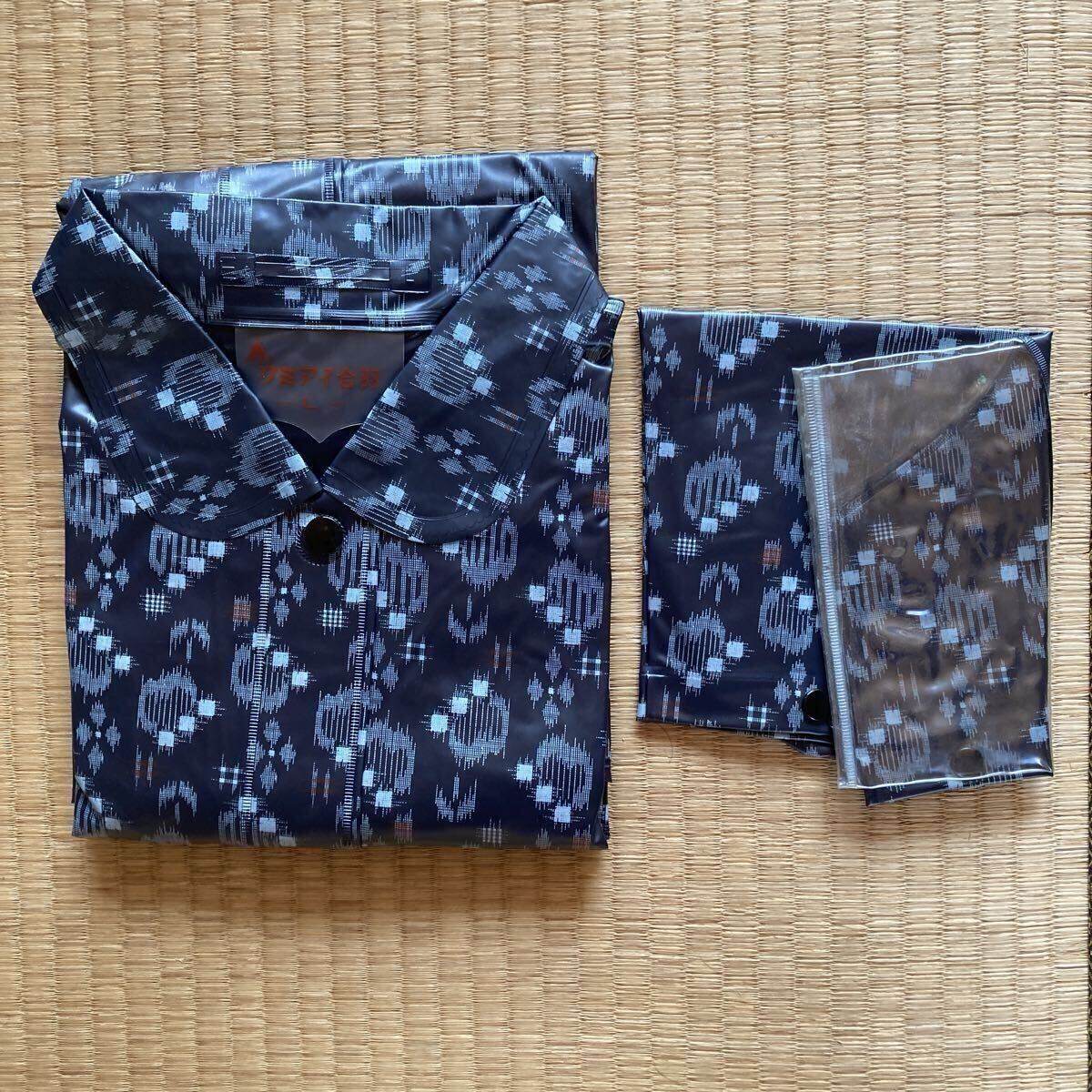 懐かしい光沢の絣柄雨合羽は、今では入手困難なので、この機会にいかがですか?