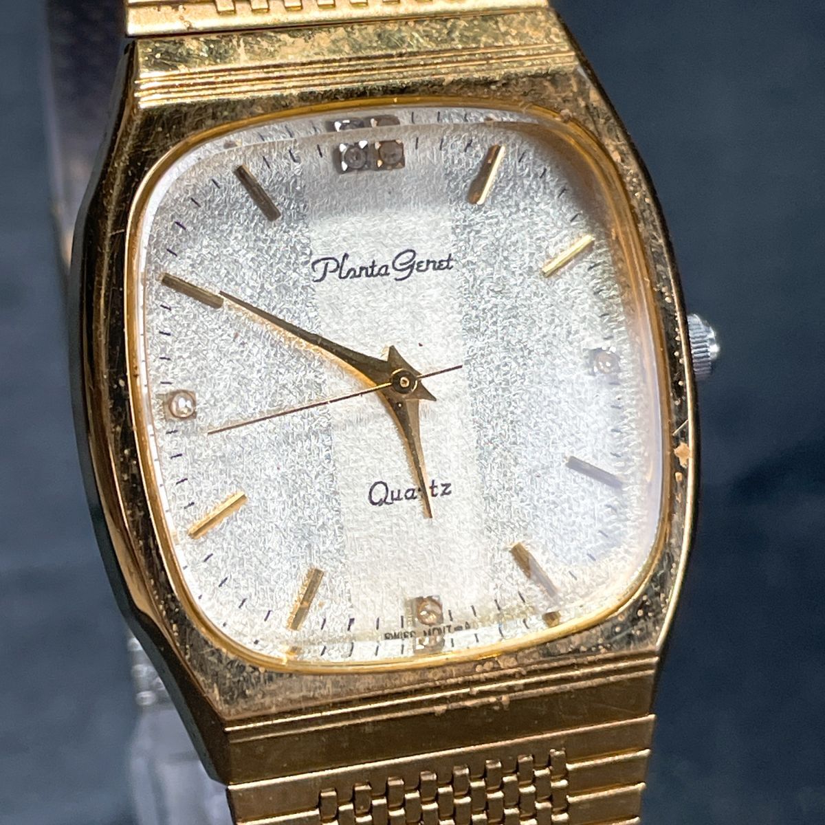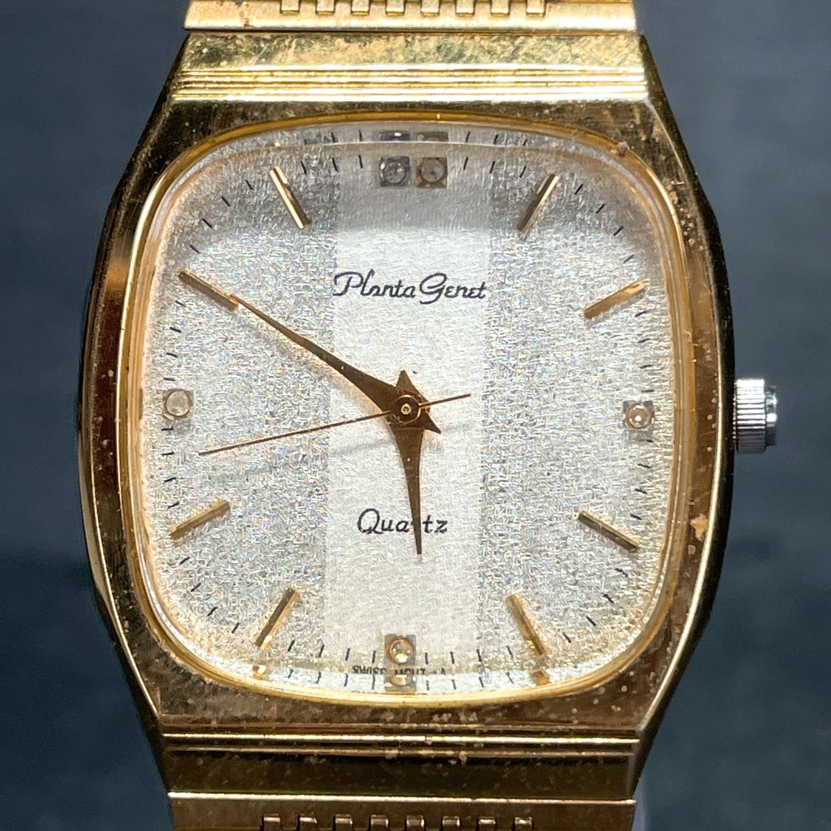 美品 Planta Genet プランタジェネット PG-124-A 腕時計 アナログ クオーツ 3針 スクエア メタルバンド 新品電池交換済み 動作確認済み