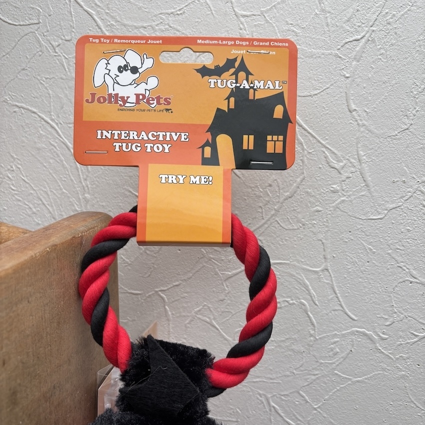 ひとりでも遊べますが、一緒に「引っ張りっこ」をして遊ぶのがオススメです。