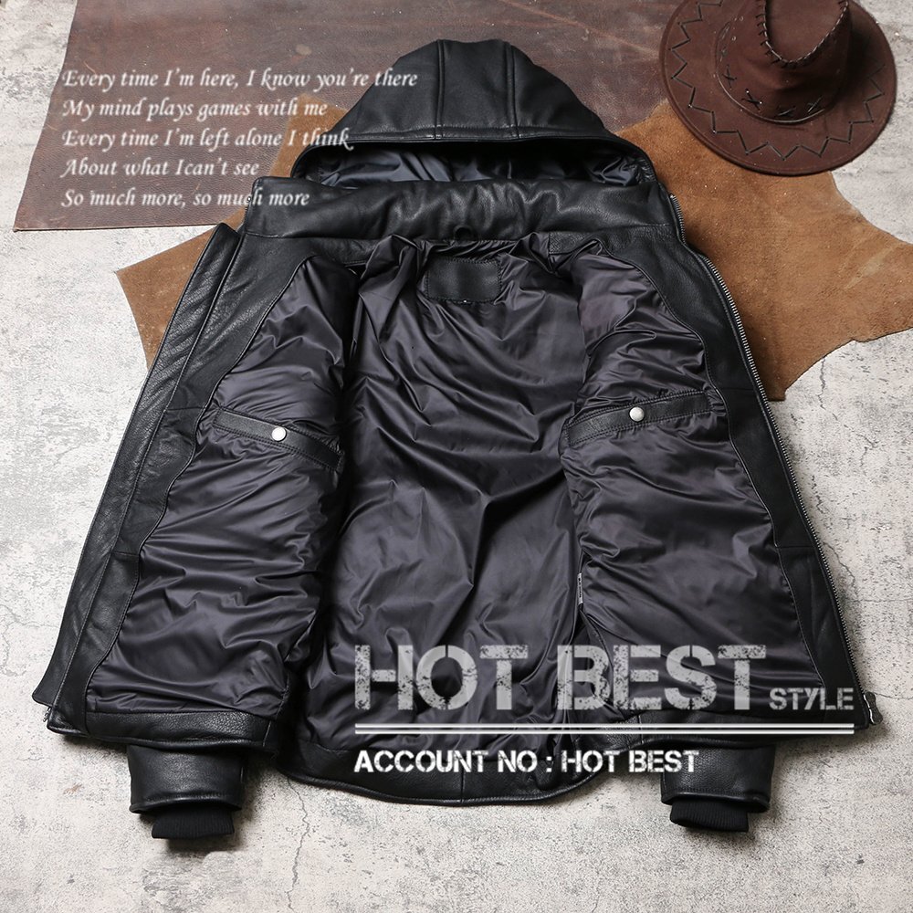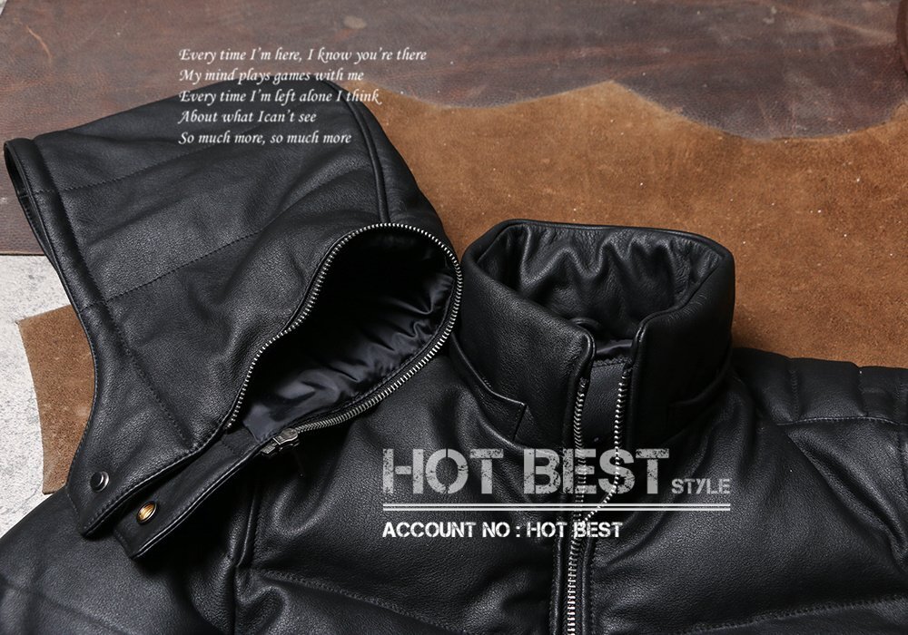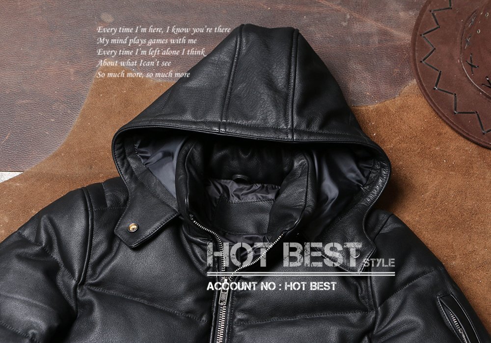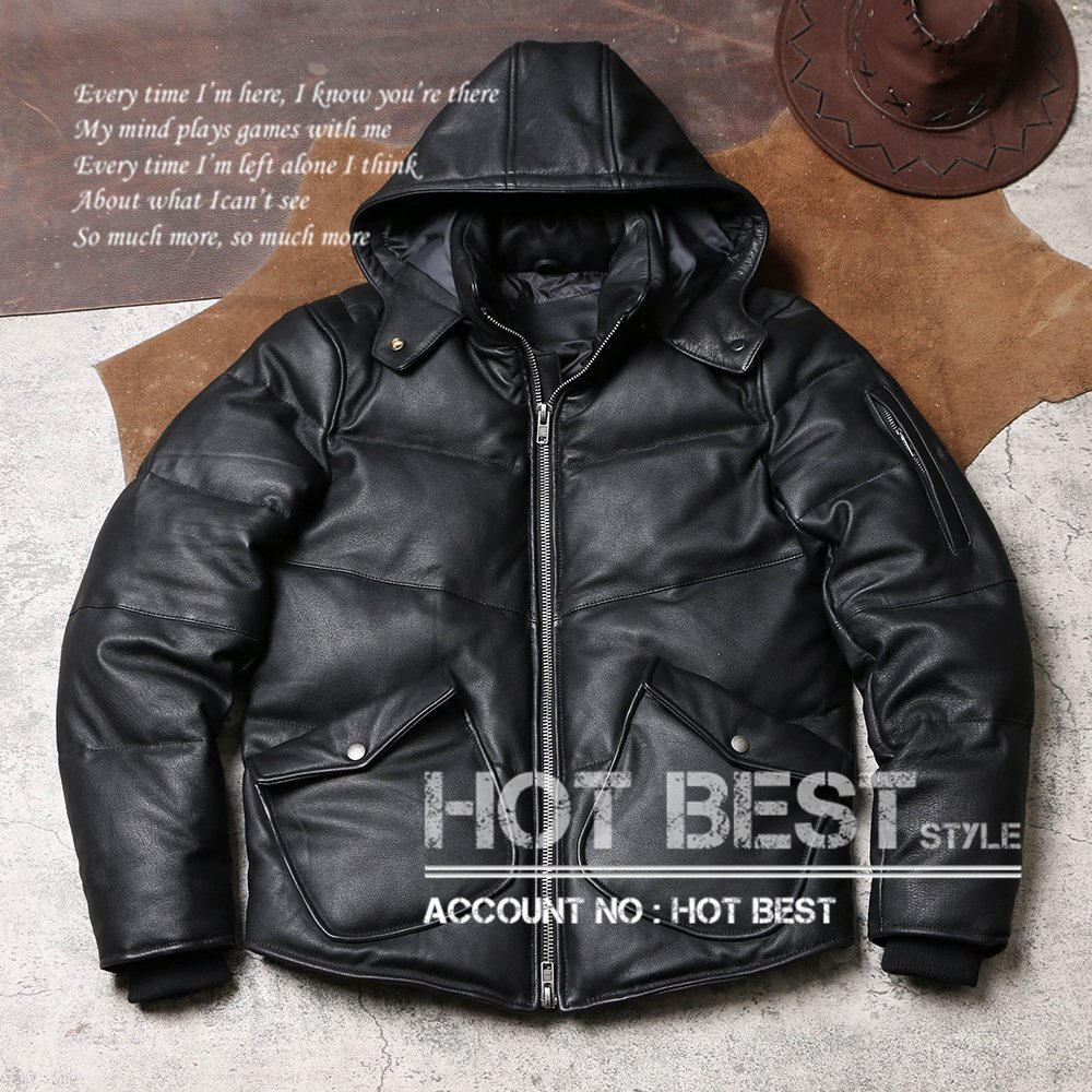 0.8mmカウハイド フーデッド レザーダウンジャケット パーカー フード イタリアンレザー 牛革 Y1585/5XL
