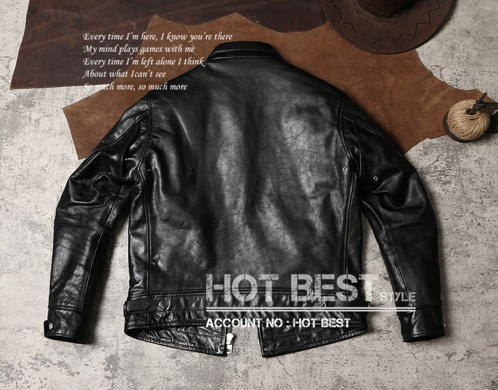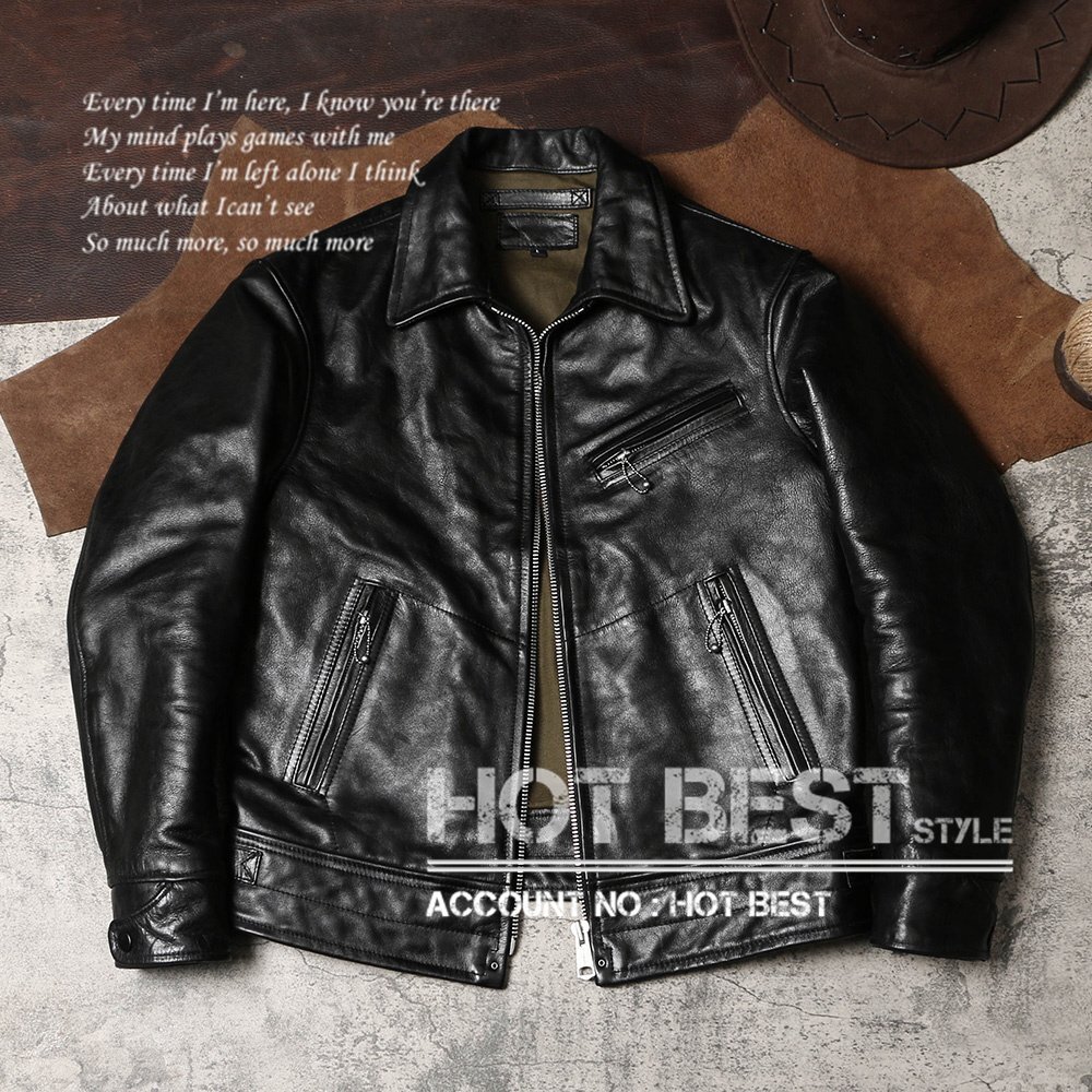 1.2mm 黒芯ホースハイド 30'sスタイル シングルライダース メンズ 革ジャン レザージャケット トスカーナ植物鞣し革 馬革 Y1536/4XL