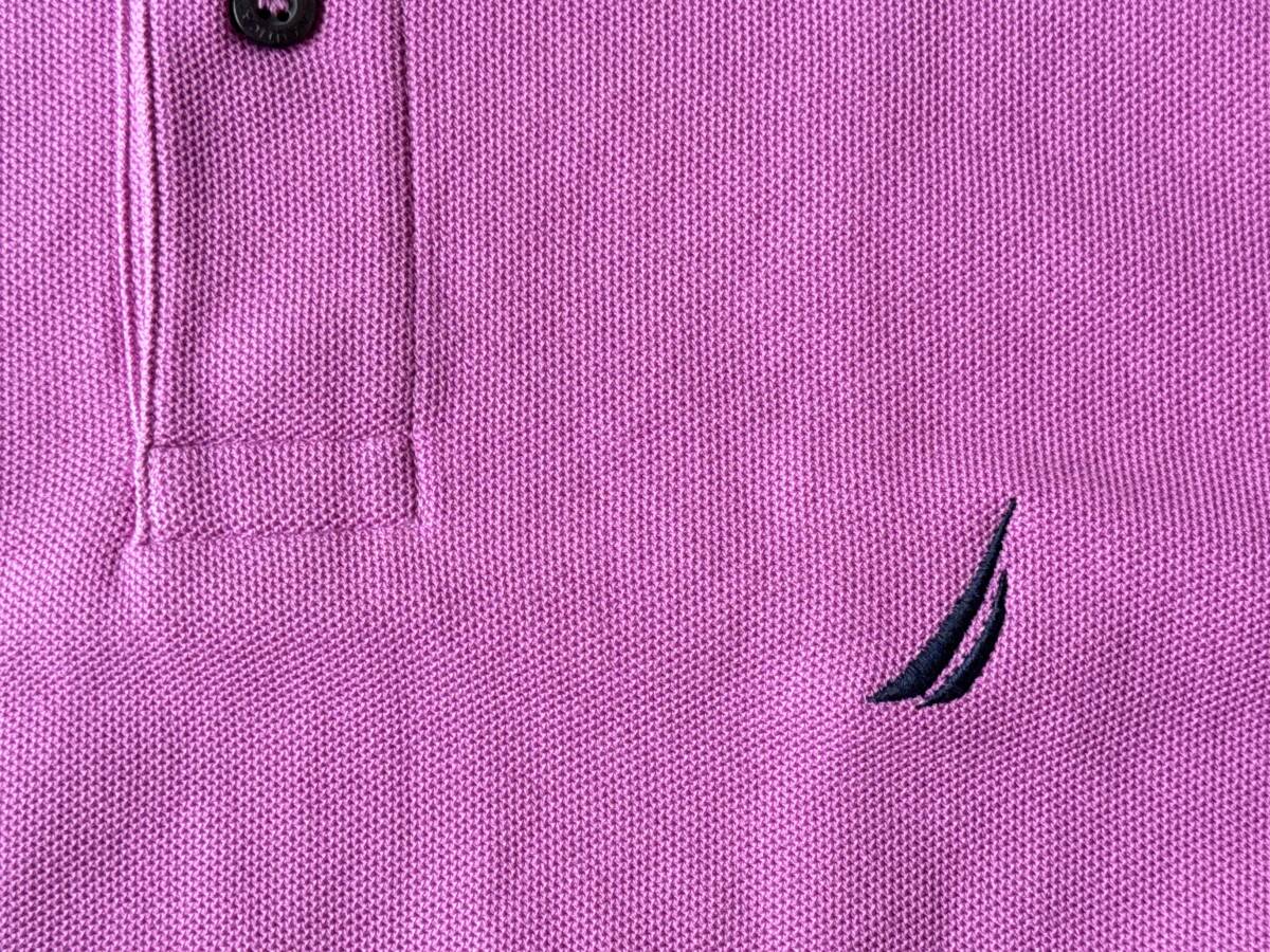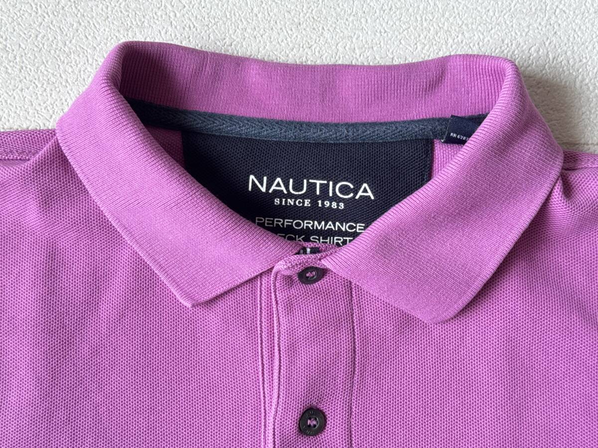 ☆送料無料☆ NAUTICA ノーティカ USA直輸入 古着 半袖 ロゴ ポロシャツ PERFOMANCE DECK SHIRT メンズ M パープル系 トップス 中古 即決