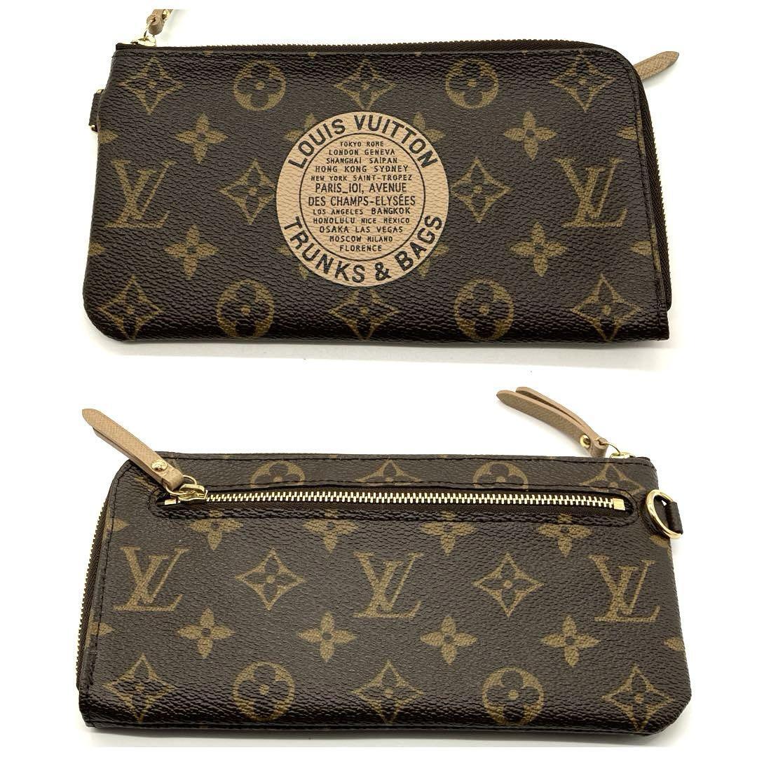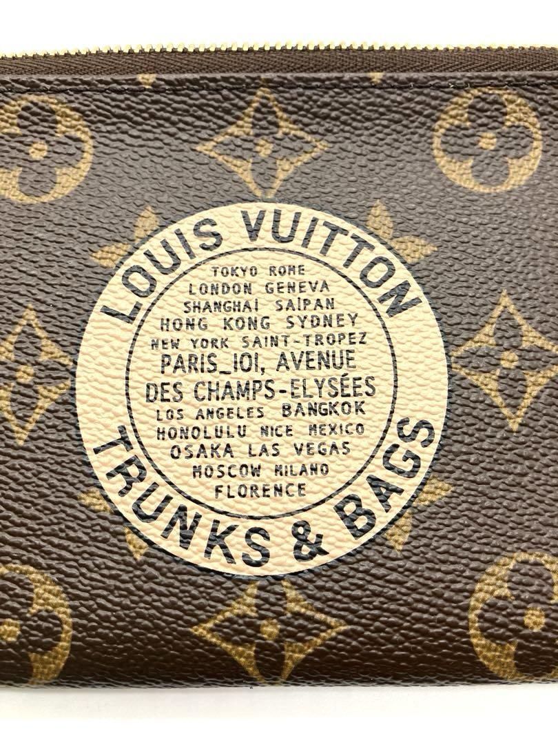 シンプルで実用的なデザインの長財布です。定番のモノグラム柄に、LOUIS VUITTON TRUNKS & BAGS のサークルロゴが施されており、上品さと存在感を兼ね備えています。